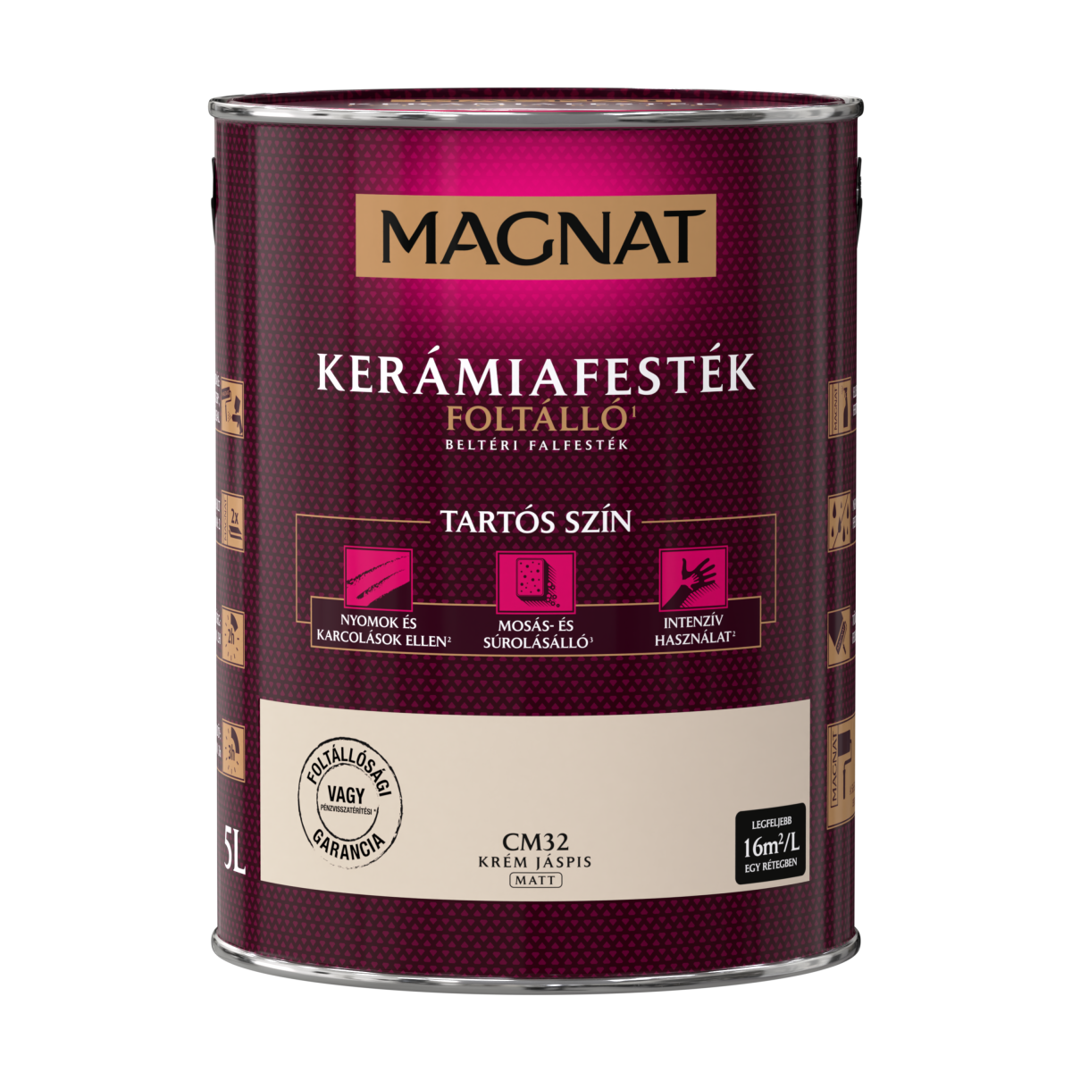 A Magnat kerámiafesték alkalmazható gipsz-, gipszkarton-, cement-, cement-mész vakolatokon, valamint üvegszálas tapétákon is. Ideális lakóhelyiségekbe, oktatási intézményekbe, egészségügyi terekbe és élelmiszertárolásra szolgáló helyiségekbe (közvetlen érintkezés nélkül).