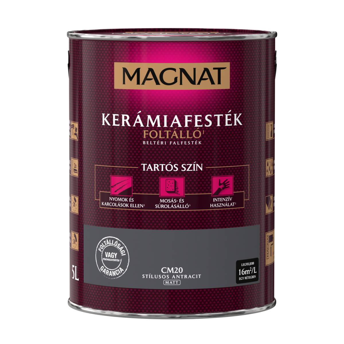 A Magnat kerámiafesték alkalmazható gipsz-, gipszkarton-, cement-, cement-mész vakolatokon, valamint üvegszálas tapétákon is. Ideális lakóhelyiségekbe, oktatási intézményekbe, egészségügyi terekbe és élelmiszertárolásra szolgáló helyiségekbe (közvetlen érintkezés nélkül).
