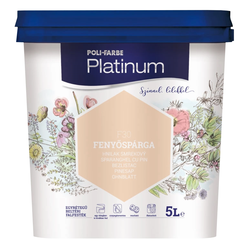A Poli-Farbe Platinum színes falfesték „Fenyőspárga” árnyalata természetes, zöldes tónusával nyugodt és harmonikus légkört teremt otthonodban. A festék gélesített, csepegésmentes állaga kényelmes munkavégzést tesz lehetővé, miközben a matt, mosható bevonat tartósabbá és könnyen tisztíthatóvá teszi a falfelületet. Ideális választás, ha természetközeli, friss hangulatot szeretnél a helyiségekbe.