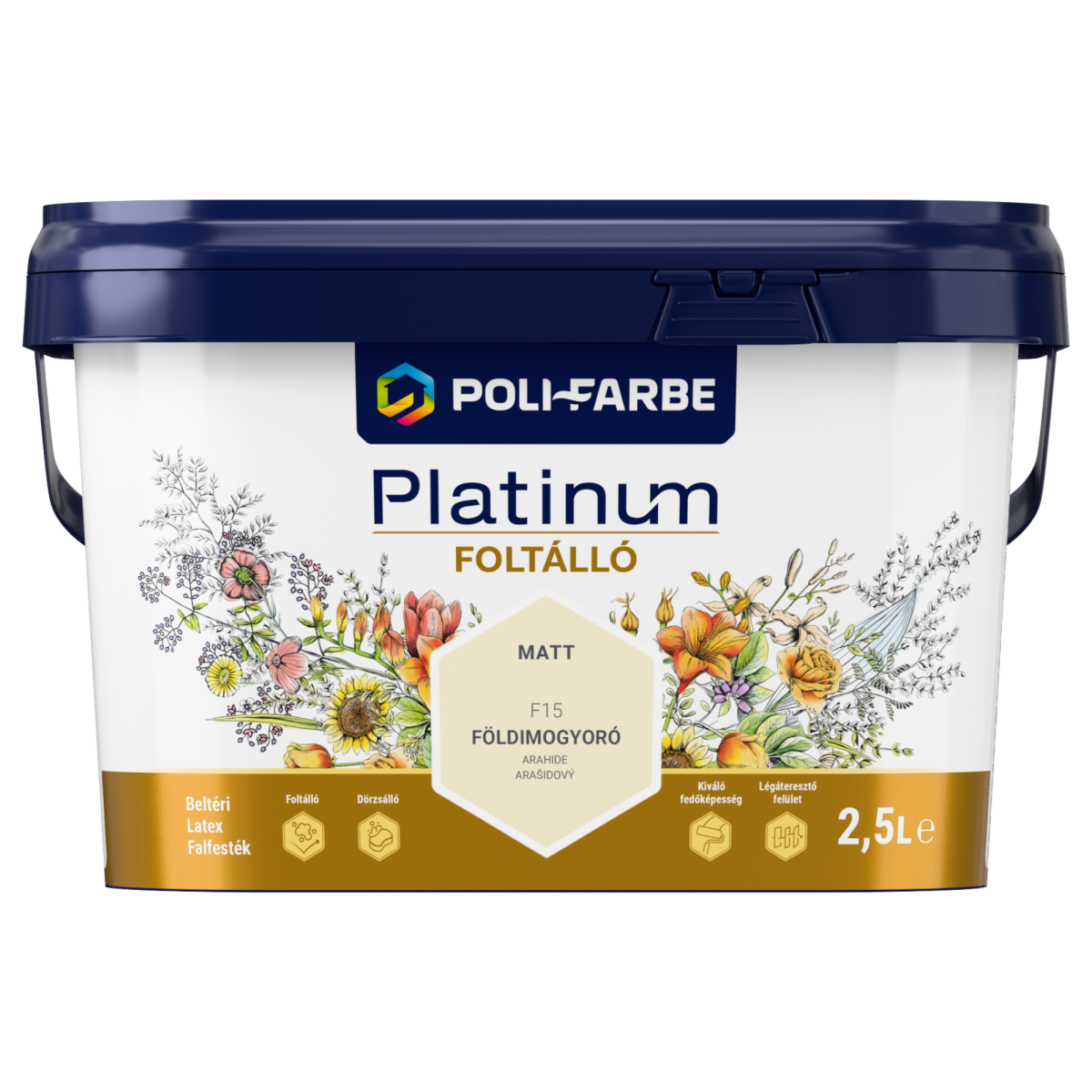 A Poli-Farbe Platinum F15 Földimogyoró falfesték természetes hatású, tartós és könnyen karbantartható választás, amely hosszú távon is megőrzi otthonod harmonikus megjelenését.