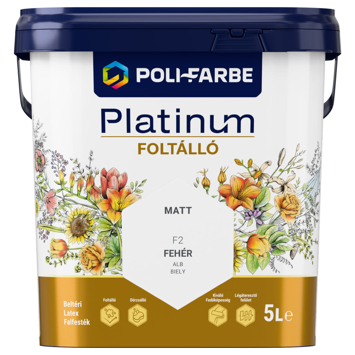 A Poli-Farbe Platinum F2 Fehér foltálló falfesték tökéletes választás, ha letisztult, tartós és könnyen tisztítható megoldást szeretnél a mindennapokban is igénybe vett beltéri falakra.