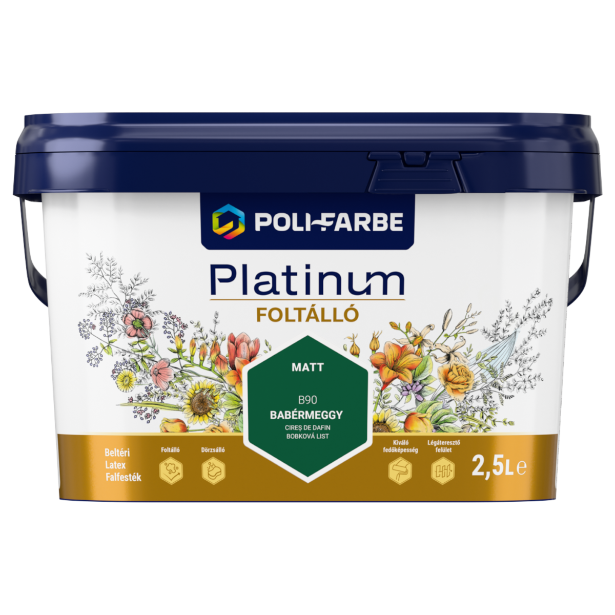 A Poli-Farbe Platinum B90 Babérmeggy foltálló latex falfesték ideális választás, ha tartós, könnyen tisztítható és esztétikus megoldást keresel – egy festék, ami nemcsak véd, hanem kiemeli otthonod karakterét is.
