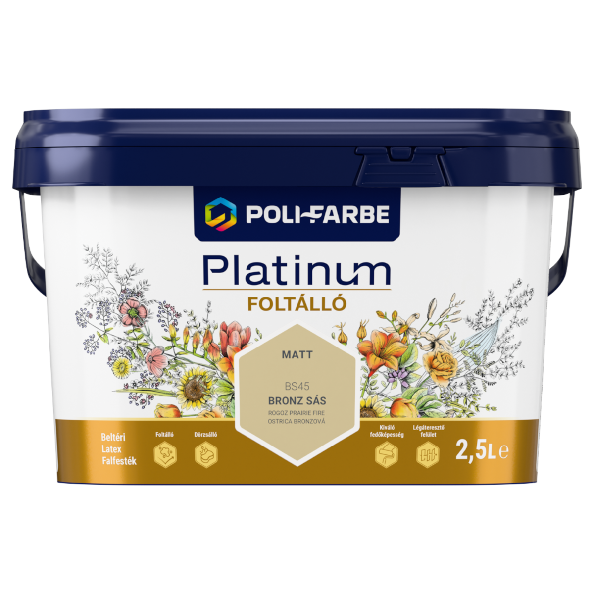 A Poli-Farbe Platinum BS45 Bronz sás foltálló falfesték harmonikus, elegáns megjelenést biztosít, miközben tartós és praktikus megoldást kínál mindennapi használatra.