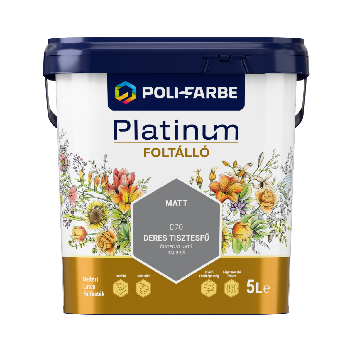 A Poli-Farbe Platinum foltálló beltéri falfesték megbízható választás, ha tartós, mosható és esztétikus falfelületet szeretnél. A D70 Deres tisztesfű árnyalat lágy, szürkés-bézs tónusa visszafogott eleganciát kölcsönöz a térnek, miközben jól illeszthető modern és klasszikus enteriőrökhöz egyaránt. A latex alapú, foltálló bevonatnak köszönhetően a falak hosszabb ideig megőrzik tiszta, rendezett megjelenésüket.