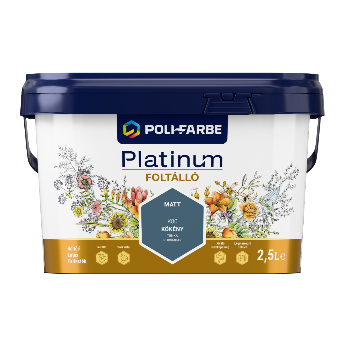 A Poli-Farbe Platinum foltálló beltéri falfesték ideális választás, ha különleges, mély árnyalatot és tartós, könnyen tisztítható felületet keresel otthonod falaira. A K80 Kökény árnyalat karakteres, elegáns kékes tónusával modern, mégis nyugodt atmoszférát teremt, amely jól illik nappalik, dolgozószobák vagy hálószobák falaira. A latex alapú, dörzsálló és légáteresztő bevonat hosszú távon is megőrzi a falak esztétikus megjelenését, miközben ellenáll a mindennapi használat során keletkező szennyeződéseknek.