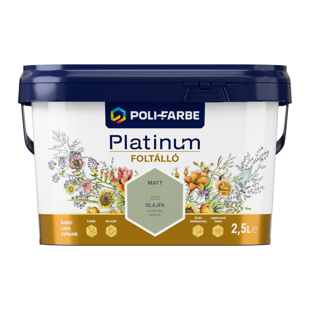 Poli-Farbe Platinum foltálló színes beltéri falfesték O20 Olajfa, 2,5l