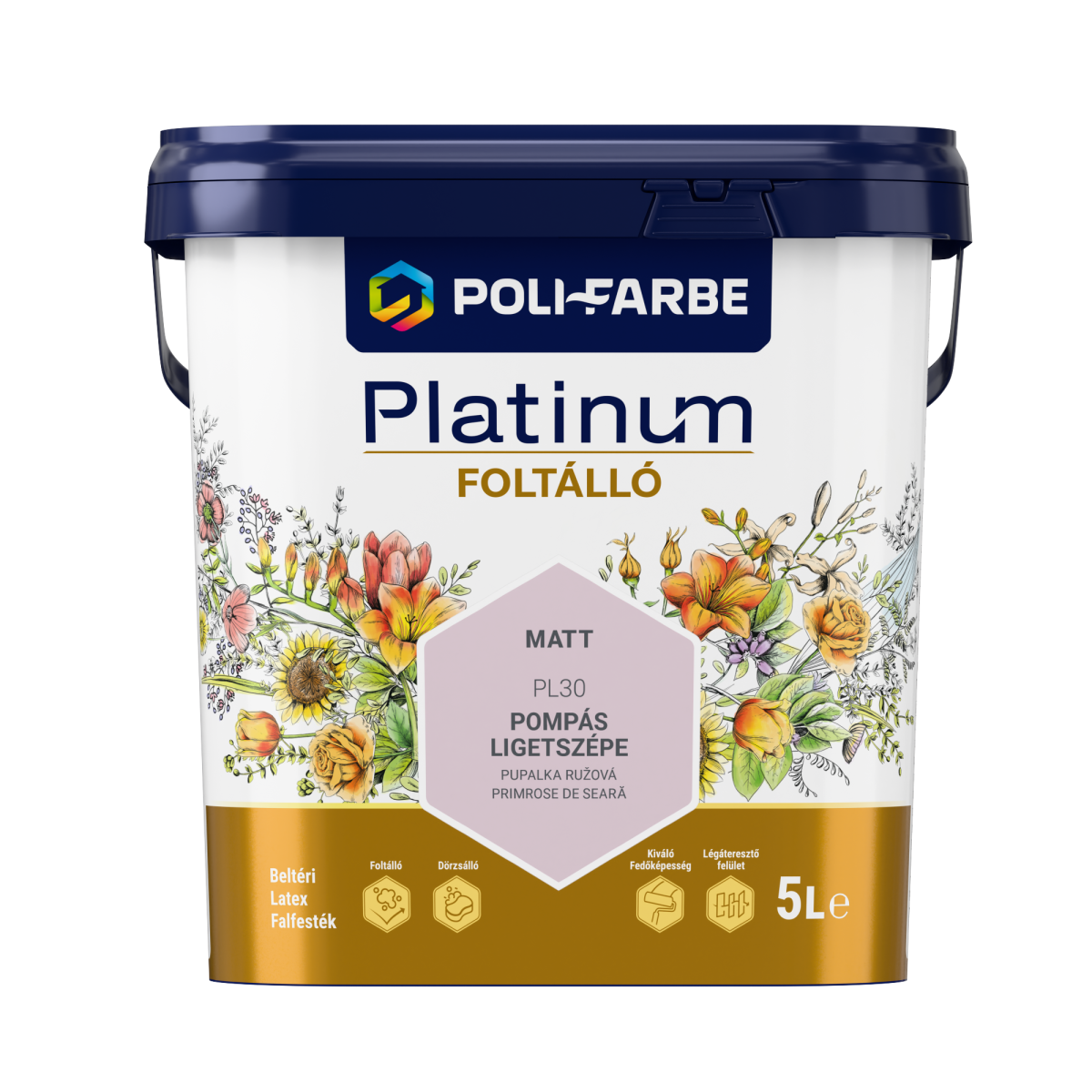 A Poli-Farbe Platinum foltálló beltéri falfesték prémium minőségű, latex alapú falfesték, amely hosszan megőrzi a falak esztétikus megjelenését. A PL30 Pompás ligetszépe árnyalat finom, elegáns rózsás tónusával melegséget és harmóniát teremt, tökéletesen illeszkedve klasszikus és modern enteriőrökbe is. Foltálló és mosható bevonata megkönnyíti a mindennapi tisztán tartást, miközben légáteresztő tulajdonsága hozzájárul a kellemes beltéri klímához.