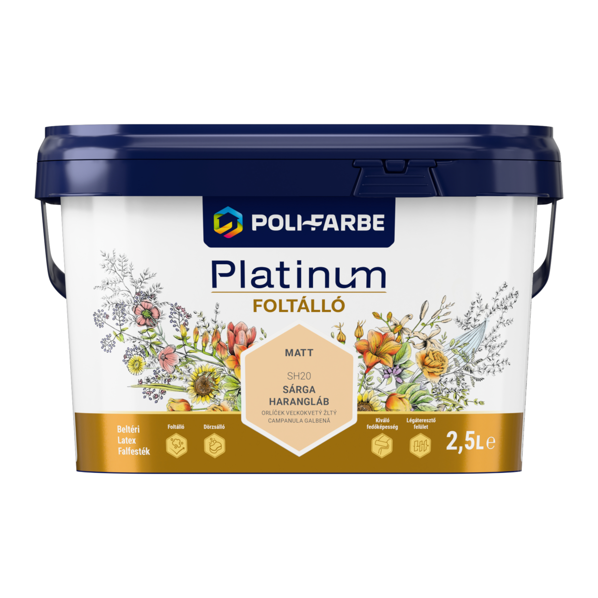 A Poli-Farbe Platinum SH20 Sárga harangláb falfesték tökéletes választás, ha ragyogó, otthonos légkört szeretnél teremteni, ahol a színek tartósan élénkek és a falak hosszú ideig makulátlanok maradnak.