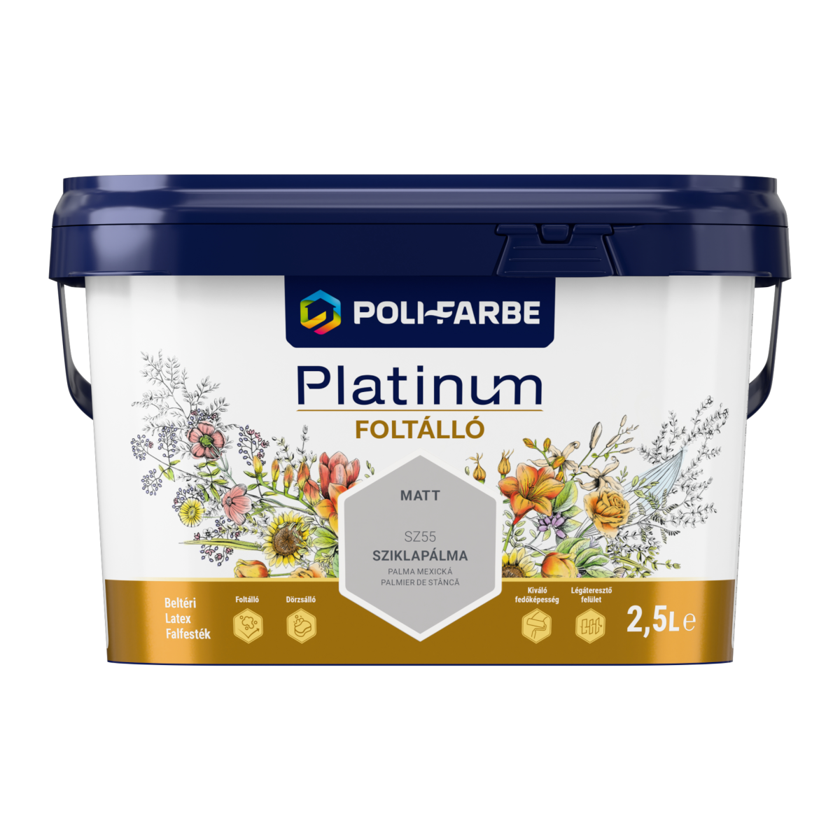 A Poli-Farbe Platinum SZ55 Sziklapálma falfesték tökéletes választás, ha friss, természetes hatású, mégis modern színvilágot szeretnél, amely tartósan megőrzi szépségét és tisztaságát.