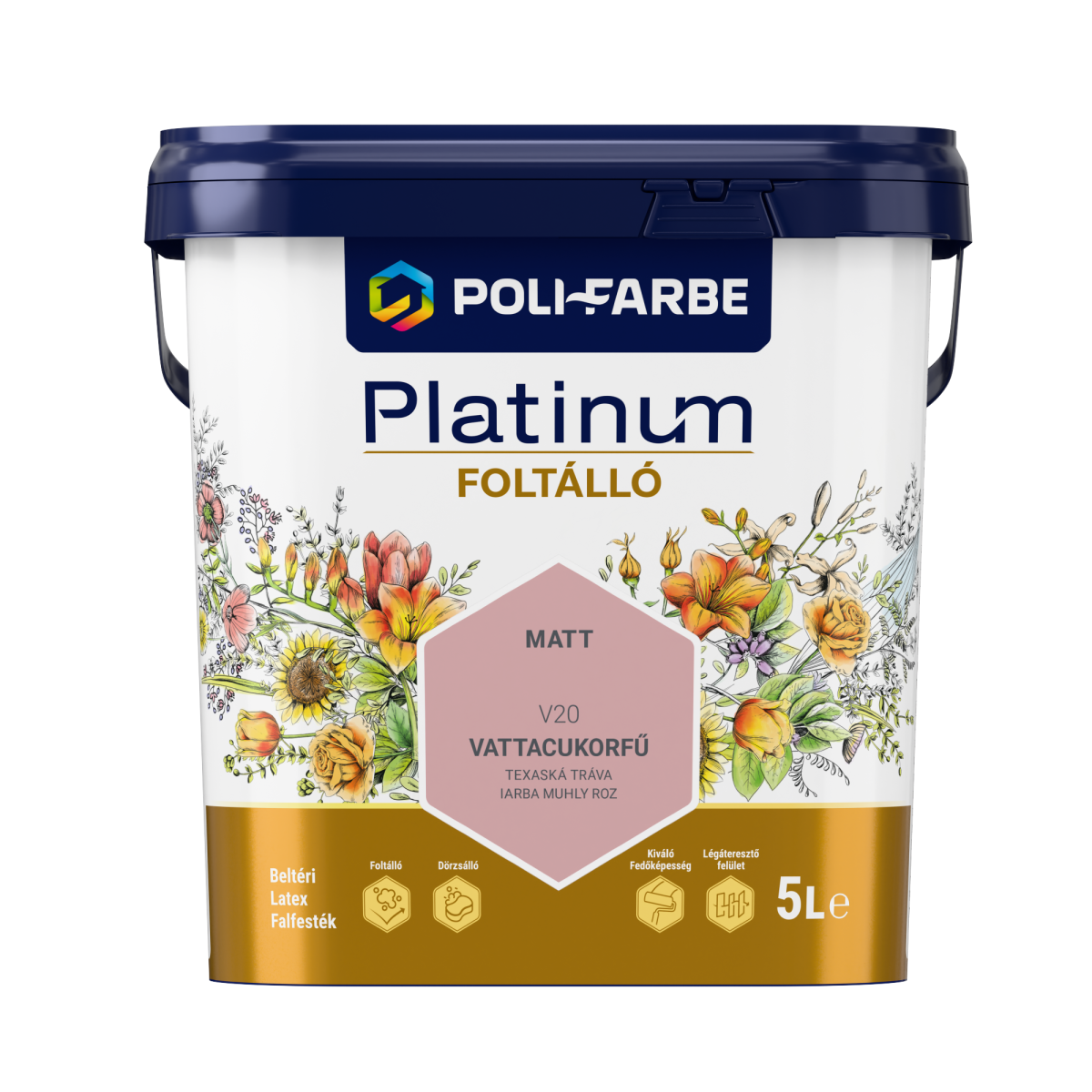 A Poli-Farbe Platinum foltálló beltéri falfesték ideális választás, ha otthonodba finom, mégis karakteres színeket szeretnél. A V20 Vattacukorfű árnyalat lágy, pasztelles rózsás tónusa kellemes, barátságos légkört teremt, ami tökéletesen illik modern és klasszikus enteriőrökhöz egyaránt. A latex alapú, foltálló festék dörzsálló, mosható és légáteresztő bevonatot képez, így a falfelület hosszú ideig megőrzi színét és tisztaságát.