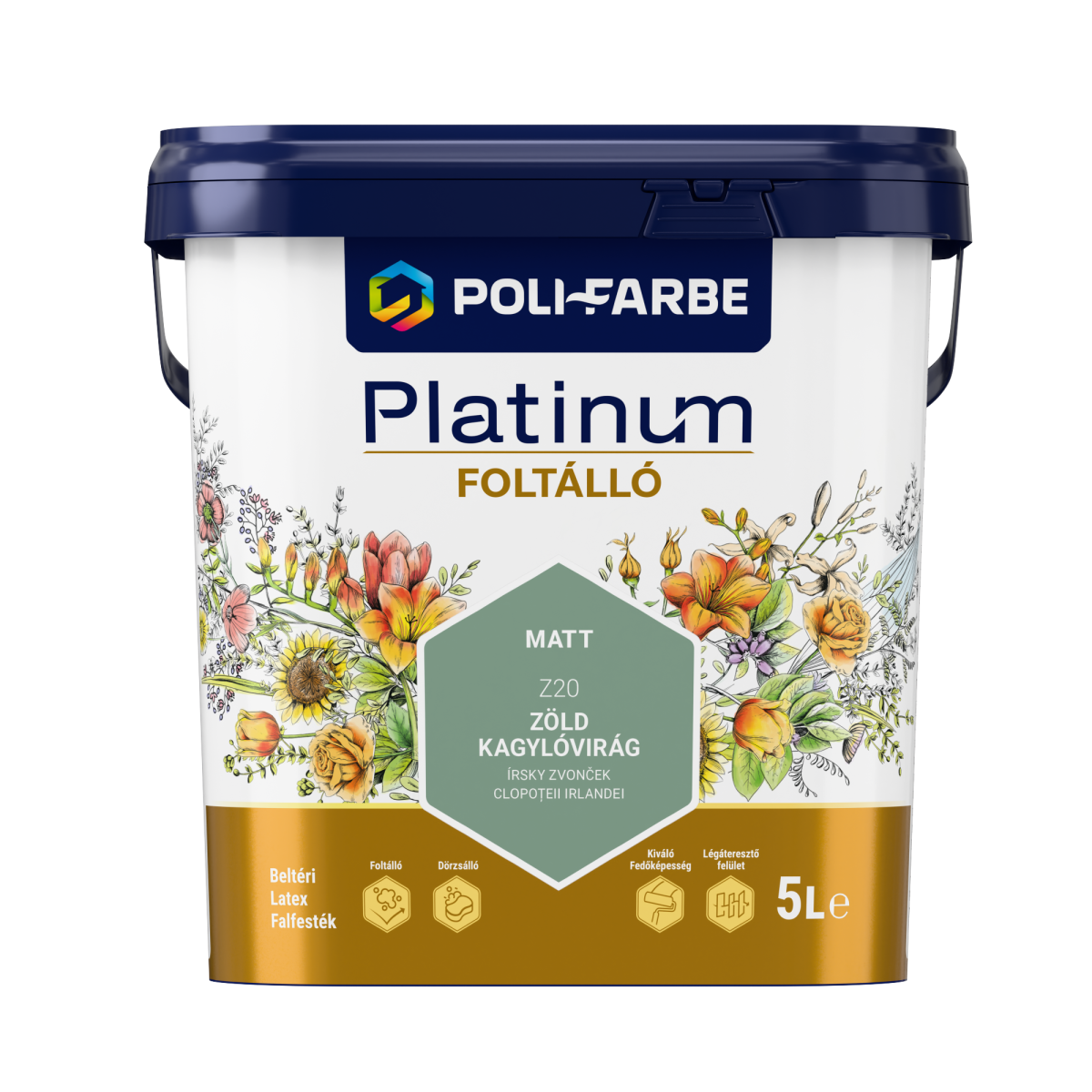 A Poli-Farbe Platinum Z20 Zöld kagylóvirág falfesték ideális választás, ha otthonodat friss, természetes és barátságos hangulatú színnel szeretnéd felfrissíteni, amely hosszú ideig megőrzi szépségét és tisztaságát.