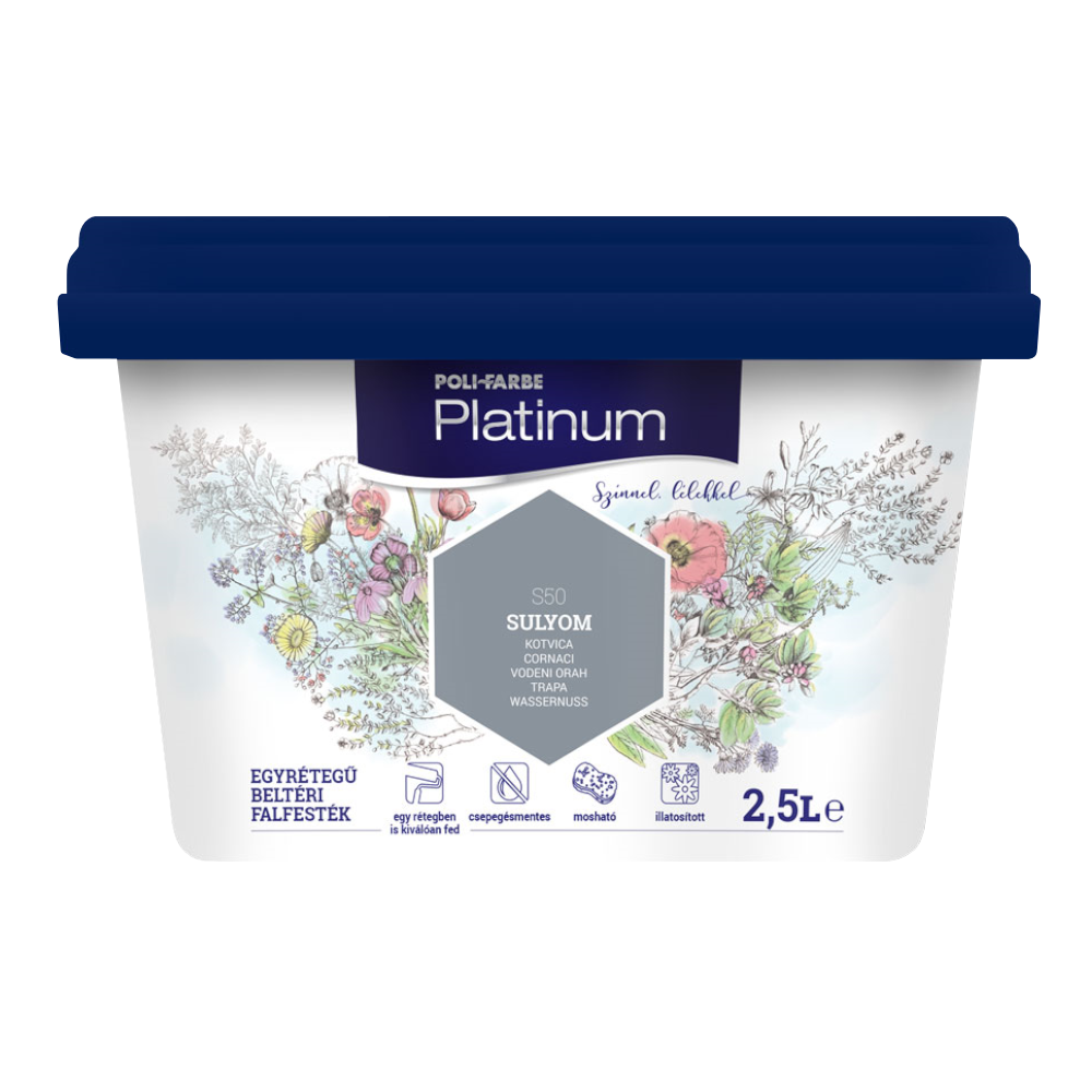 A Poli-Farbe Platinum S50 „Sulyom” színes beltéri falfesték friss, természetes zöld árnyalata kiegyensúlyozott és megnyugtató légkört teremt bármely helyiségben. A festék matt, egyenletes bevonatot ad, amely kiemeli a falak tisztaságát és modern megjelenését. Gélesített, csepegésmentes állagának köszönhetően könnyen használható, így akár kezdők is precíz végeredményt érhetnek el vele.