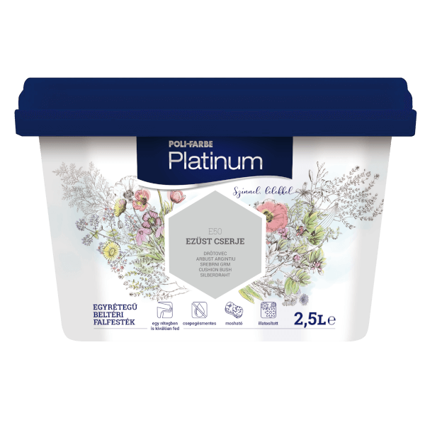 A Poli-Farbe Platinum színes falfesték „Ezüst cserje” árnyalata kifinomult, világos szürke tónusával modern, letisztult enteriőrök megteremtéséhez ideális választás. A vizes bázisú, gélesített formula megkönnyíti a festést, miközben csepegésmentes felvitelt és egyenletes fedést biztosít. Matt, mosható bevonata tartós, ápolt megjelenést kölcsönöz a falaknak, így a helyiség hosszú ideig megőrzi friss, rendezett hangulatát.