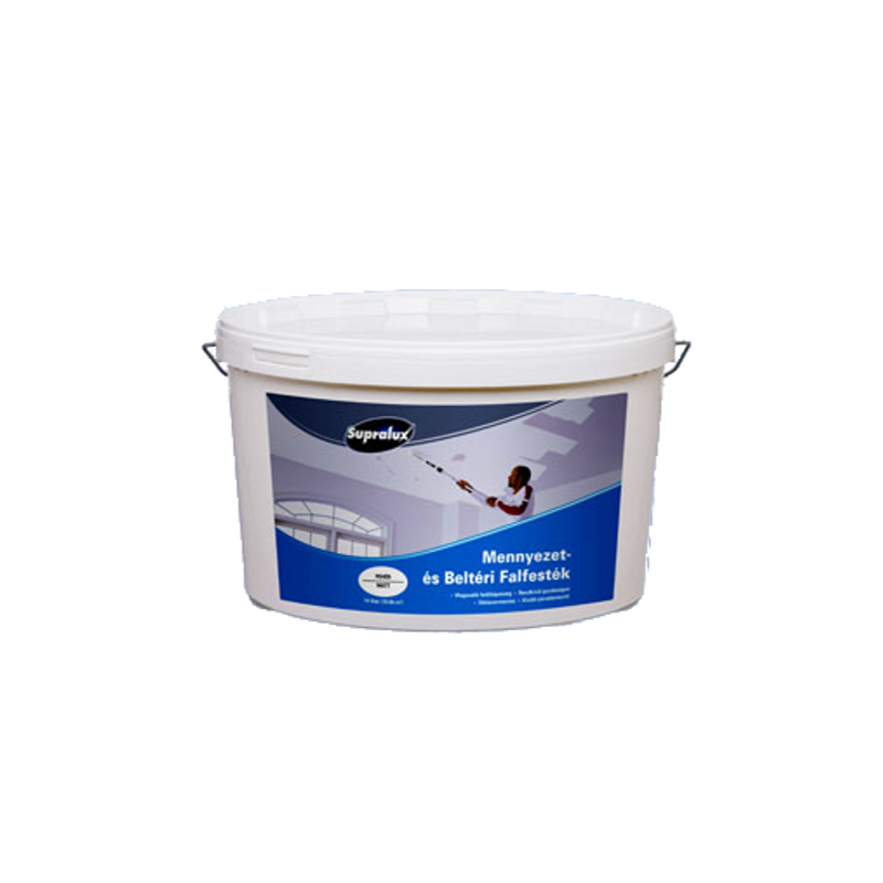 Vizes diszperziós beltéri falfesték, beltéri igénybevételnek kitett falak, mennyezetek, (vakolat, beton, gipszkarton, üvegszálas tapéta) megfelelő előkészítés utáni festésére. Kiváló fedőképességű, matt, mosható bevonatot ad, könnyen felhordható, hosszú nyitott idejű, kimagasló fehérségű, páraáteresztő. A festendő felületeknek száraznak, épnek és tisztának (olaj-, zsír-, por és egyéb szennyeződésektől mentesnek) kell lennie. A levelesen leváló, táskásodó, repedezett, régi bevonatokat kaparással, csiszolással el kell távolítani és a felületet ki kell javítani (habarcs, glett). Frissen vakolt felületen csak a vakolat teljes átszáradása után alkalmazható és a felületet a festék felhordása előtt mélyalapozni kell. A porózus, nedvszívó felületeket Supralux Impregnáló mélyalapozóval szilárdítsuk meg, a fal, a festék és a levegő hőmérséklete +5°C felett legyen, korongecsettel, hengerrel vagy Airless szórással hordható fel, a festéket felhasználás előtt alaposan keverjük össze. Az egyes rétegek között a hőmérséklet és a páratartalom függvényében legalább 4 óra száradási időt kell biztosítani, a még nedves festék vizes mosással távolítható el a munkaeszközökről.