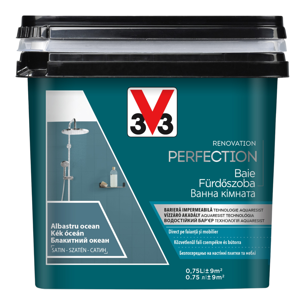 V33 Renovation Perfection felújító fürdőszobabútor és csempefesték 0,75l, kék óceán