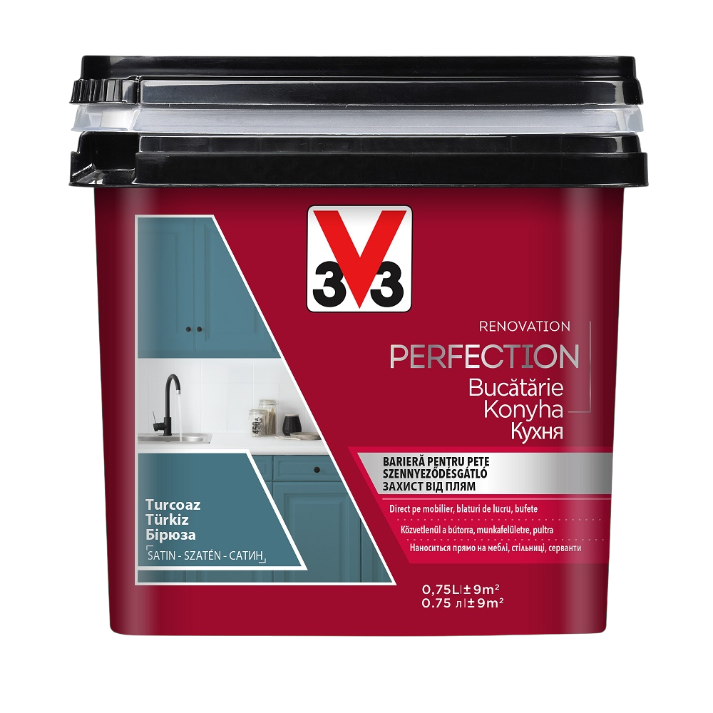 V33 Renovation Perfection felújító konyhabútor és csempefesték 0,75l, türkiz