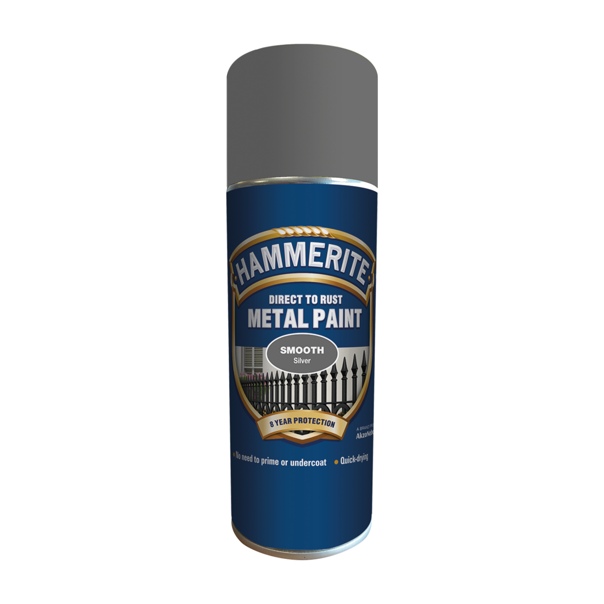 A Hammerite ezüst fényes spray gyors és praktikus megoldást nyújt a fémfelületek korrózió elleni védelmére. Az aeroszolos formula megegyezik a dobozos Hammerite fémfestékek összetételével, így hatékonyan gátolja a rozsda terjedését, miközben tartós, esztétikus bevonatot képez.