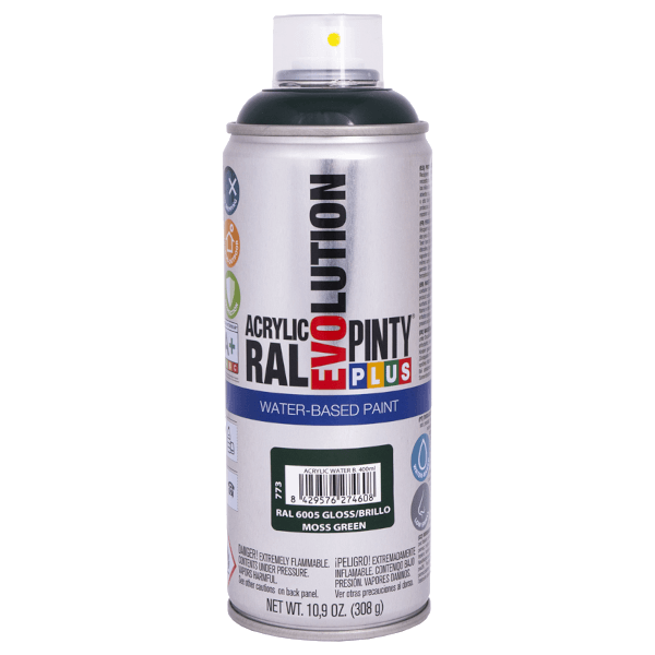 Vizes bázisú akril spray, minden káros oldószertől mentes. Szinte teljesen szagtalan, minden felületen alkalmazható. Könnyen használható bármilyen felületen. Nagy ellenállású, hatékony védelmet nyújt a festett tárgyaknak a vizes bázisú PintyPlus Evolution festék spray. Az innovatív technológiának köszönhetően, minden felületen magas fokú tapadást és fedést biztosít