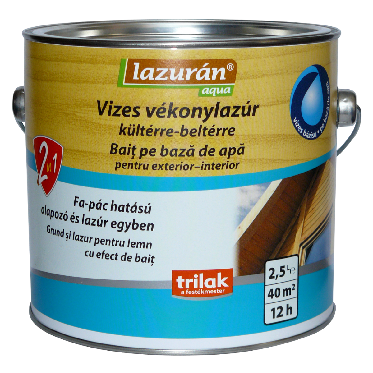 Időjárásálló, rendkívül gyorsan száradó, 2 az 1-ben, vizes bázisú alapozó és lazúr festék. Fa-pác hatású. Használata során a festés nem jár kellemetlen szagokkal. Mélyen beszívódik a farostok közé, kiemeli a fa eredeti erezetét, növeli a fafelület víztaszító hatását. A nagyobb, nem mérettartó faszerkezetek (pl. kerítésléc, ereszdeszka, lambéria) bevonására különösen ajánlott. - Kártevő rovarok, gombák elleni mérgeket nem tartalmaz. - Kül- és beltéri fafelületek, dekoratív bevonására ajánlott. - A színtelen változat kizárólag beltérre javasolt.