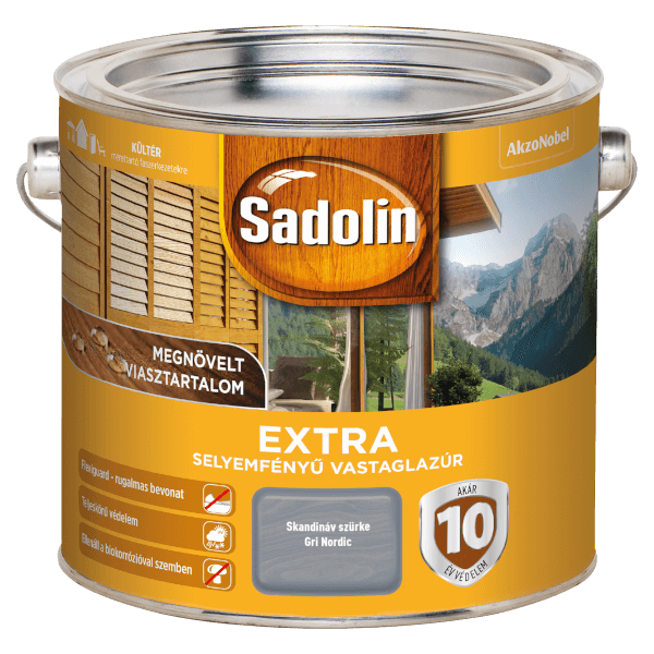 Felhasználási mód:A festetlen, új fa száraz, tiszta és zsírmentes legyen. A gyantakiválást H‐400 hígítóval le kell mosni. A fát Sadolin Base impregnáló alapozóval telítésig alapozzuk. Amennyiben a felületre túl sok alapozót vittünk fel (fényes foltok, felületek jelennek meg), a felesleget hígítóval távolítsuk el, különben a lazúr nem tapad meg rendesen a felületen, és idő előtti kopást, leveles felválást okozhat! Festett felület esetén csak a bevonathiányos részt kell Sadolin Base‐zel újraalapozni. A degradálódott, szürke fafelületet előzetesen le kell csiszolni. A repedezett, lazán tapadó bevonatot el kell távolítani, majd úgy kell eljárni, mint új felületnél. A Sadolin Extra vastaglazúrt a Sadolin Base felhordását követően 24 óra elteltével ecsettel hordjuk fel.