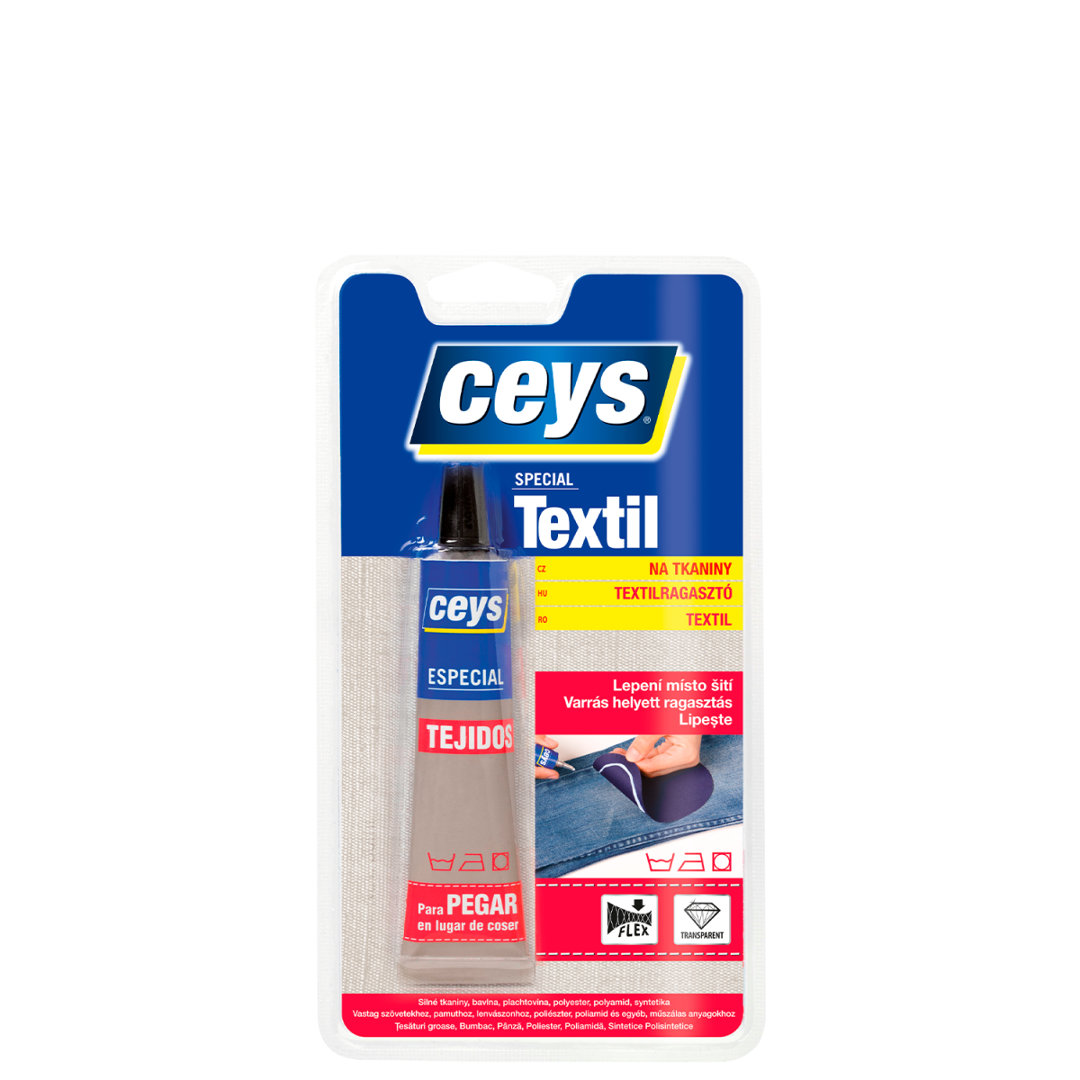 Mosható és vasalható varrás nélküli rugalmas kötést biztosít. Száradás után átlátszó. Bármilyen természetes és szintetikus szövet egymáshoz és más anyaghoz való ragasztásához: fa, bőr, fém, karton, gipsz, kerámia, üveg…