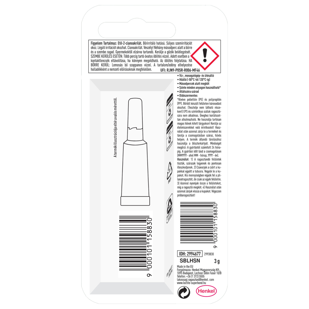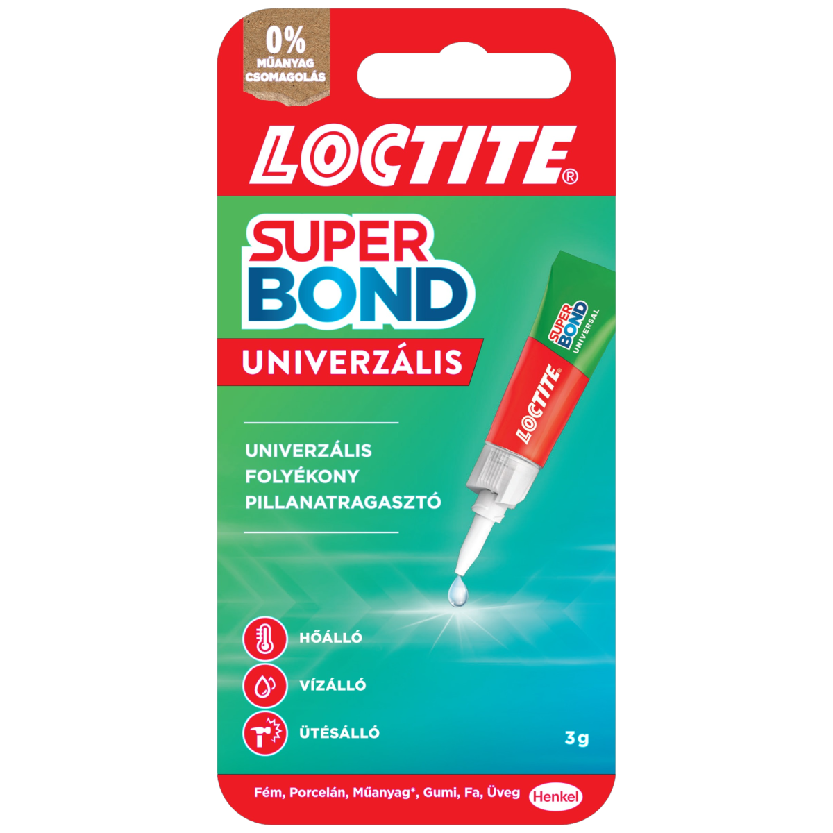 LOCTITE Super bond pillanatragasztó 3 g-os kiszerelésben. Pillanatok alatt megköt és megragasztja a legtöbb anyagot. Biztonságosan nyitható. A pillanatragasztó egy rendkívül erős és gyorsan kötő ragasztó. Ma már széles körben használt eszköz lett, amely nem csak a hétköznapi tárgyak javítására alkalmas. Ez a termék hőálló, ütésálló és vízálló. Az életkép tájékoztató jellegű!