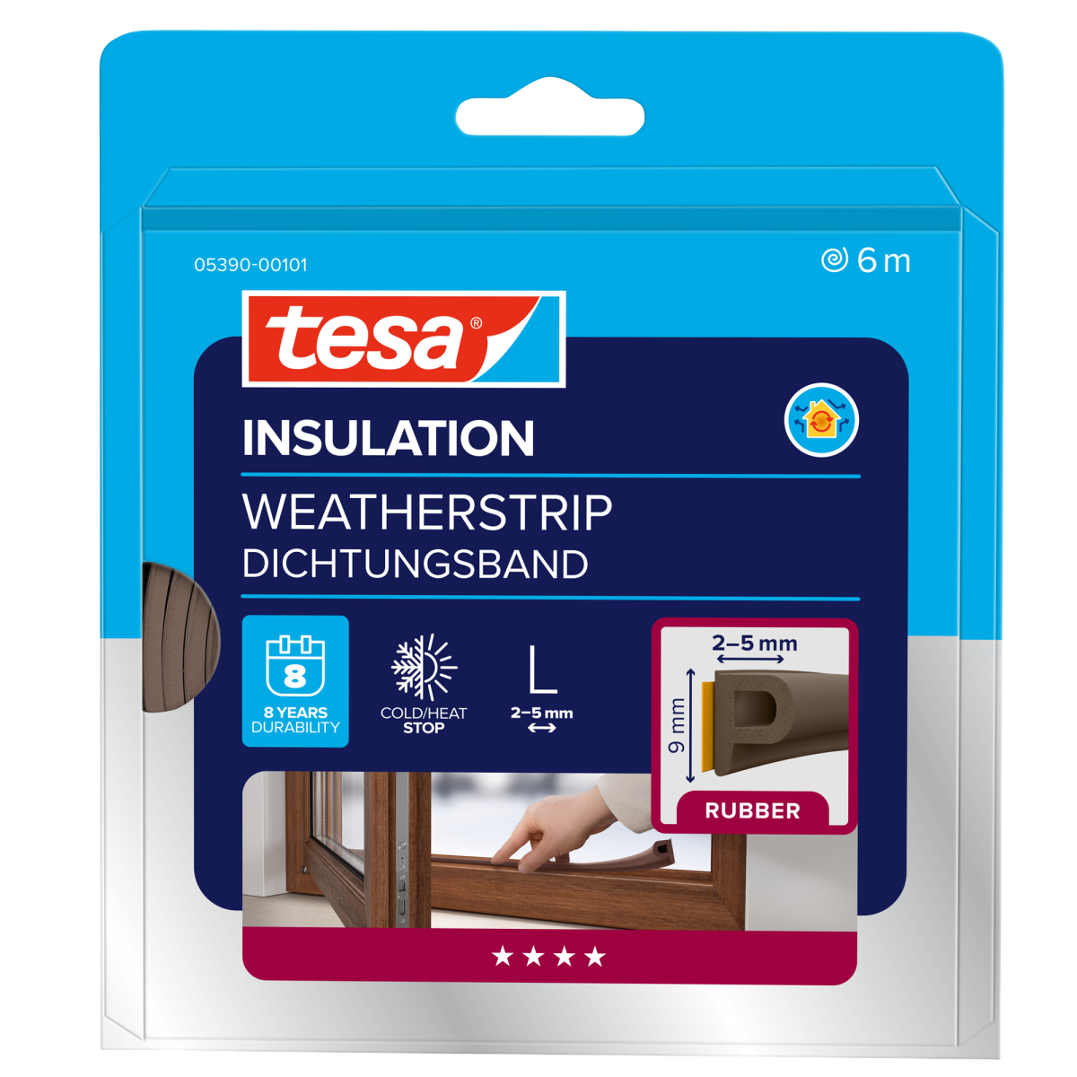 Tesa szigetelés ajtó-, ablaktömítő csík 6mx9x5,5mm L, P profil, barna