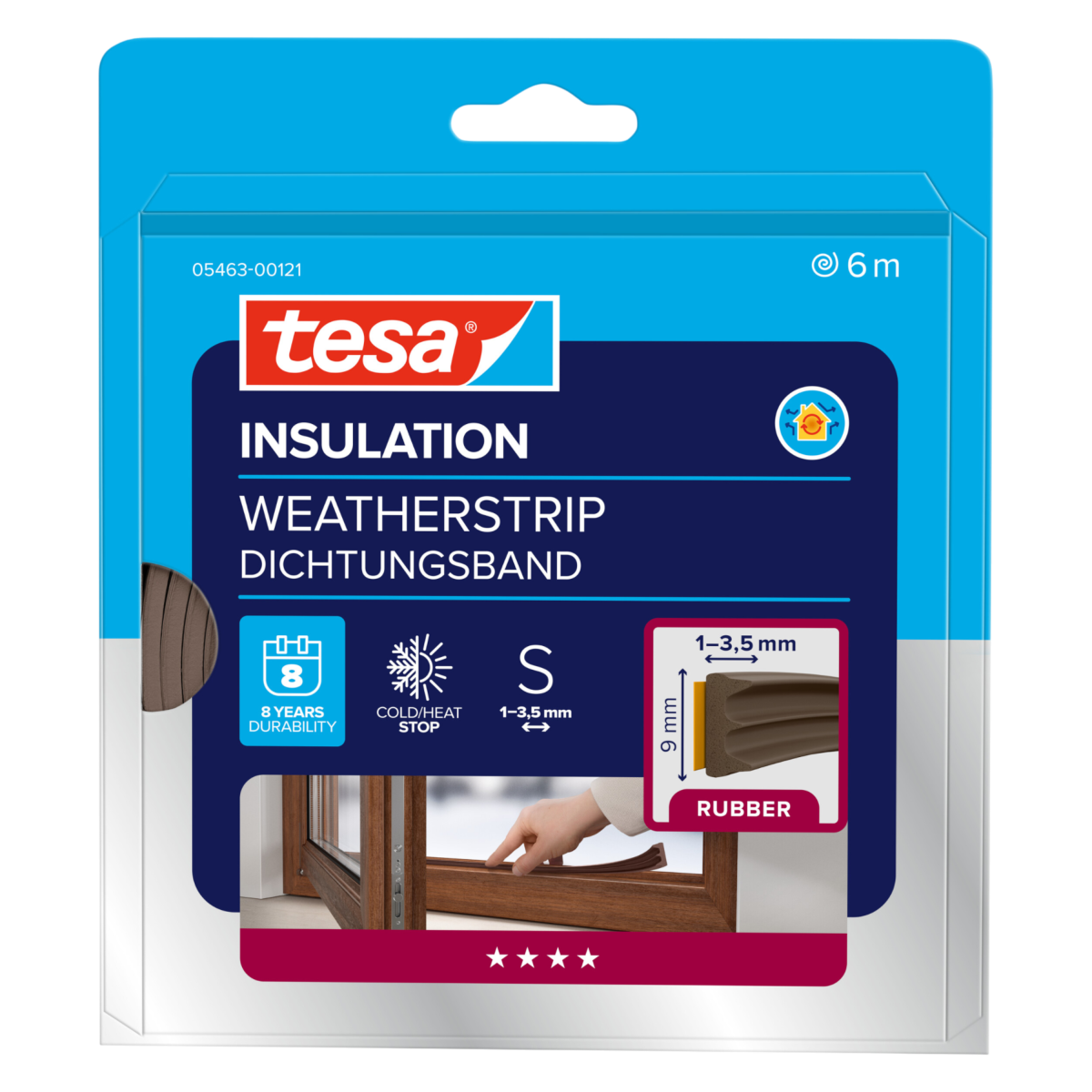 A tesa ajtó- és ablaktömítő S gumi E profil hatékony megoldást ad a huzatos nyílászárók problémájára. A barna, öntapadós szigetelőcsík javítja a hőérzetet, csökkenti a kinti zajok bejutását, és mérsékli a por, illetve nedvesség bekerülését a lakótérbe. Az E profilú kivitel kifejezetten a kisebb – 1–3,5 mm-es – hézagok kitöltésére készült, így alkalmas ablakkeretek, ablaktokok, szobák vagy szekrények ajtajainak tömítésére. Az öntapadó hátoldalnak köszönhetően gyorsan, szerszám nélkül rögzíthető, és szükség esetén maradvány nélkül eltávolítható.