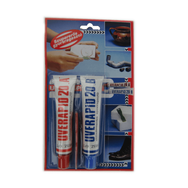 Uverapid 20 perces kétkomponensű gyorsragasztó. Sokoldalúan felhasználható olyan ragasztási esetekhen, ahol nagy ragasztó erő elérése és annak tartós fennmaradása szükséges. A gyorsragasztóval polietilén, lágy PVC és "plexi" üveg kivételével jóformán minden anyag ragasztható. Acél, színesfémek, rozsdamentes acél. kő, beton, kerámia, csempe, üveg, hőre keményedő műanyagok, fröccsöntött polisztirol, poliuretán és polisztirol habanyagak (pl. hungarocell), fa, farostlemezek önmagukhoz és egymáshoz való ragasztására alkalmazható.