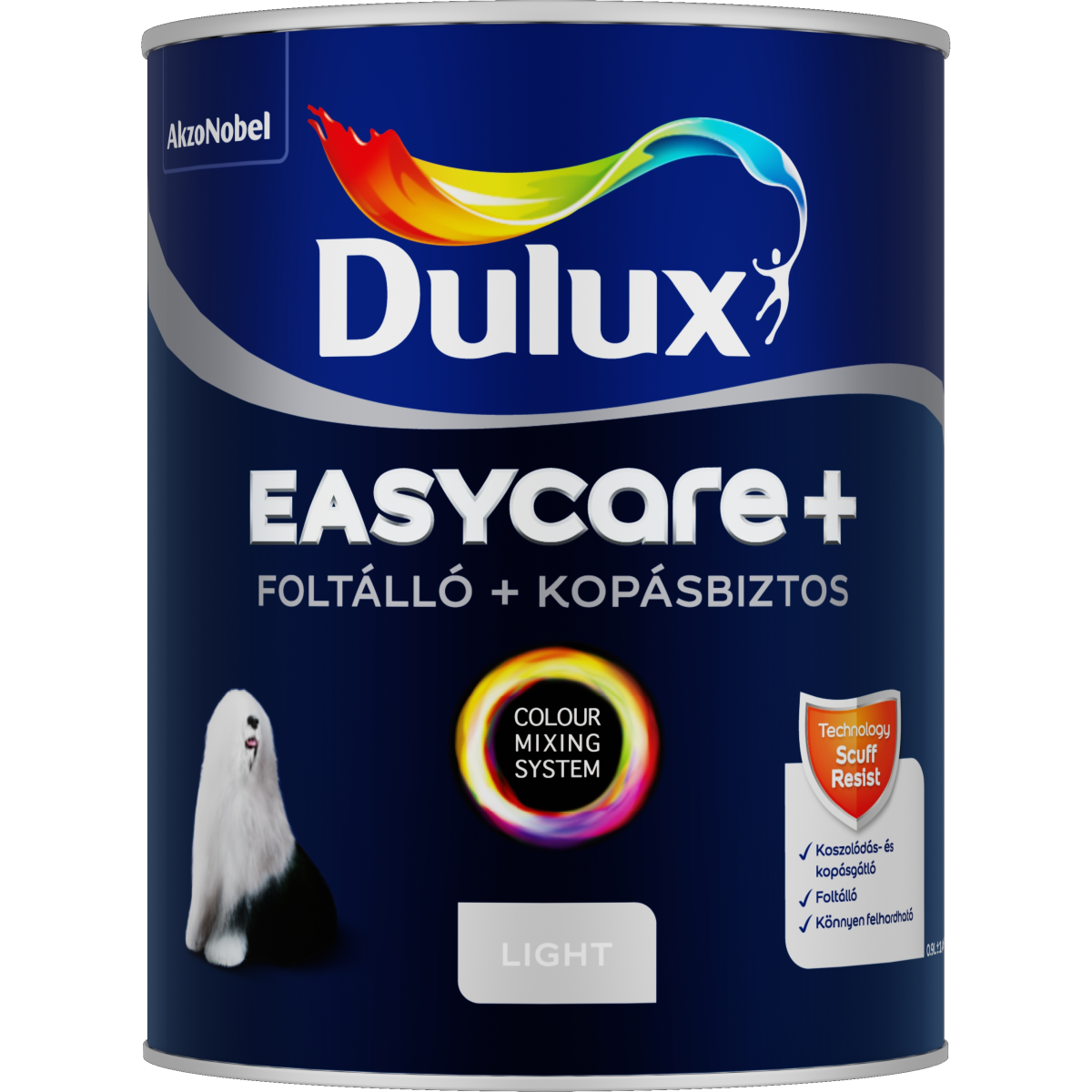 A Dulux EasyCare+ a mechanikai hatásoknak kivételesen ellenálló tulajdonságú, matt, latex, beltéri falfesték. A termék a kopásbiztos technológiának köszönhetően különlegesen tartós és szilárd bevonatot alkot, amelyen mérsékelten alakulnak ki szennyeződés-, dörzsölés-, és kopásnyomok. A fa, műanyag vagy gumi tárgyak (bútorok, porszívó, kerékpár stb.) okozta karcolások és horzsolások kevésbé károsítják a falfelületet, amely így sokáig tiszta és újszerű marad.