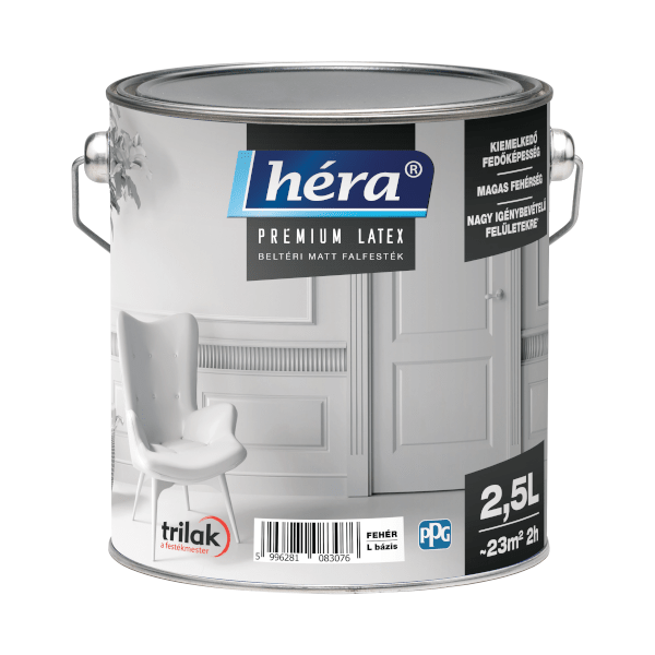 Nagyszerű fedőképességű beltéri falfesték, a legellenállóbb fehér Héra falfesték. Páraáteresztő, ugyanakkor mosás- és dörzsálló, így ideális lehet nagy igénybevételű helyiségekben, például konyha, fürdőszoba, gyerekszoba. A festendő felület legyen száraz, pormentes, hordképes, megfelelően alapozott. A glettelést és a felület átcsiszolását követően a fal szívóképességét diszperziós mélyalapozóval kell kiegyenlíteni. A terméket feldolgozás előtt alaposan fel kell keverni. Hígítást nem igényel. Amennyiben mégis hígítani kell, az első réteghez max. 5% vizet lehet adagolni. Felhordása ecsettel, hengerrel vagy megfelelő szóróberendezéssel javasolt 2 rétegben. A rétegek közti száradási idő 2 óra. A teljes száradási idő 2 óra.