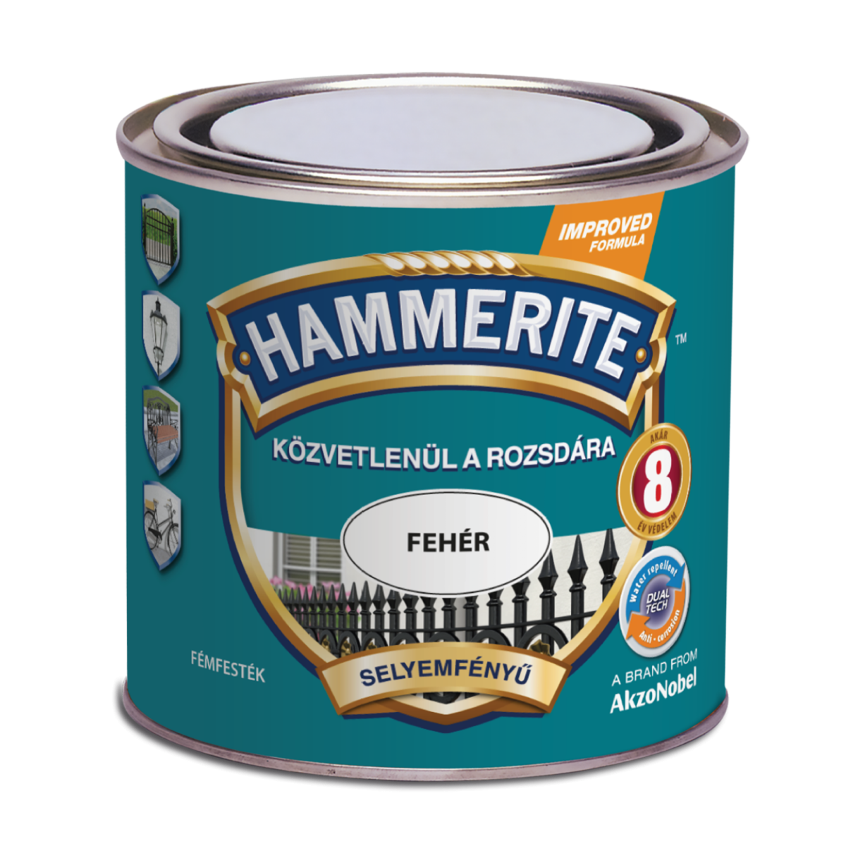 A megújított összetételű, aktív rozsdagátló hatású, oldószeres fedőfesték, mely minden eddiginél jobb védelmet biztosít a fémnek. Használatához nincs szükség alapozóra, közbenső rétegre, hígításra, elegendő két réteg Hammerite felvitele, és 6 évig nincs további védelemre szükség. A Hammerite speciális összetétele a már meglévő, jól tapadó rozsda elterjedését megakadályozza és az üvegpelyhes összetétele különlegesen tartós védemet biztosít a festett felületnek. Festés után 30 perccel érintőszáraz, 4 óra elteltével átfesthető, szatén felület, kül- és beltéri használatra is alkalmas, kiadósság: kb. 6 m2/l.