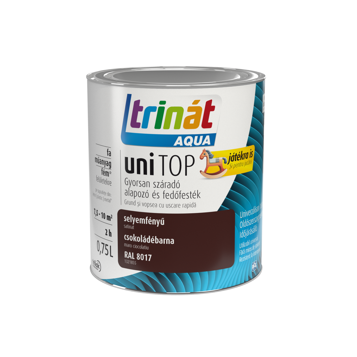 TRINÁT AQUA UNITOP SELYEMFÉNYŰ ZOMÁNC FESTÉK 0,75L, CSOKOLÁDÉBARNA RAL 8017