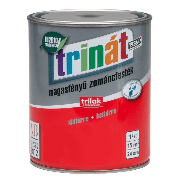 Trinát magasfényű alkidgyanta kötőanyagú zománcfesték. Vízlepergető adalékainak köszönhetően képes a bevonat felületeket megvédeni az időjárás káros hatásaitól és késleltetni a korhadást, korróziót. Alapozott kül- és beltéri fafelületek (bútorok, nyílászárók stb.) és beltéri falfelületek (lépcsőházak, iskolák), továbbá kül- és beltéri fémszerkezetek (kerítés, csövek stb.) átvonó festésére használható. Használat előtt alaposan fel kell keverni! Nem szükséges hígítani. Amennyiben mégis szükséges, ecsettel történő alkalmazáshoz max 2% szintetikus hígítóval ajánlott. A bevonandó felület legyen száraz, pormentes, hordképes, megfelelően előkészített. Faanyagok esetén az anyag max. 5% nedvességtartalmú lehet. A festék felhordása ecsettel, hengerrel vagy szóróberendezéssel javasolt 2 rétegben. 12 óra elteltével átfesthető, a teljes száradási idő 48 óra.