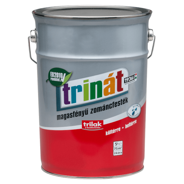 Trinát magasfényű alkidgyanta kötőanyagú zománcfesték. Vízlepergető adalékainak köszönhetően képes a bevonat felületeket megvédeni az időjárás káros hatásaitól és késleltetni a korhadást, korróziót. Alapozott kül- és beltéri fafelületek (bútorok, nyílászárók stb.) és beltéri falfelületek (lépcsőházak, iskolák), továbbá kül- és beltéri fémszerkezetek (kerítés, csövek stb.) átvonó festésére használható. Használat előtt alaposan fel kell keverni! Nem szükséges hígítani. Amennyiben mégis szükséges, ecsettel történő alkalmazáshoz max 2% szintetikus hígítóval ajánlott. A bevonandó felület legyen száraz, pormentes, hordképes, megfelelően előkészített. Faanyagok esetén az anyag max. 5% nedvességtartalmú lehet. A festék felhordása ecsettel, hengerrel vagy szóróberendezéssel javasolt 2 rétegben. 12 óra elteltével átfesthető, a teljes száradási idő 48 óra.