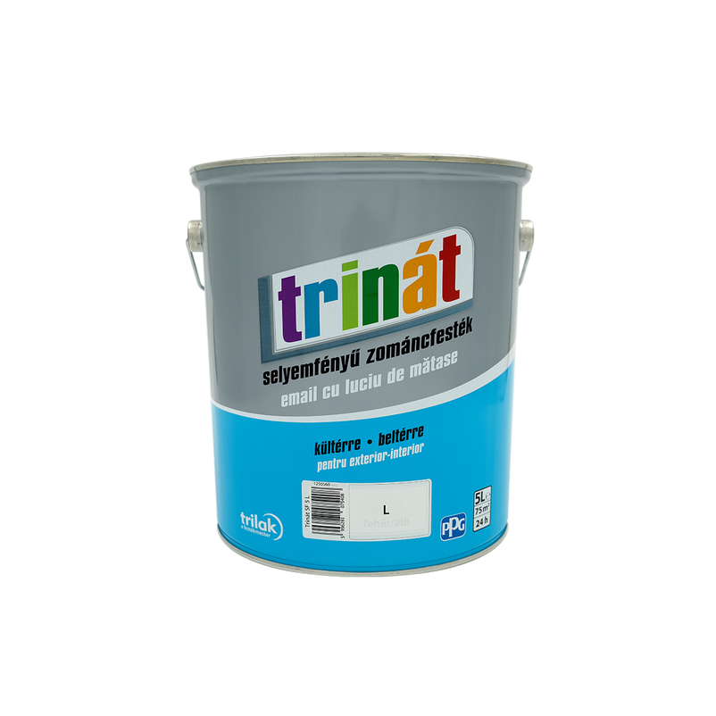 Trinát selyemfényű zománcfesték kültéri és beltéri fa- és fémfelületek védelmére. Alkidgyanta-kötőanyagának köszönhetően megóvja a kezelt felületet az időjárás káros hatásaitól. Nagy fedőképességű, kiválóan terül az alapfelületen így egyenletes, dekoratív, selyemfényű bevonatot képez. A festendő felület legyen száraz, por-, zsír-, és rozsdamentes, hordképes, megfelelően előkészített. A terméket használat előtt alaposan fel kell keverni, illetve bizonyos időközönként festés közben is. Hígítani nem szükséges. Amennyiben mégis hígításra van szükség maximum 2% szintetikus hígítóval. A felhordás ecsettel, lakkhengerrel, szóróberendezéssel javasolt 2 rétegben. A rétegek közti száradási idő 12 óra. A teljes száradás 48 óra.