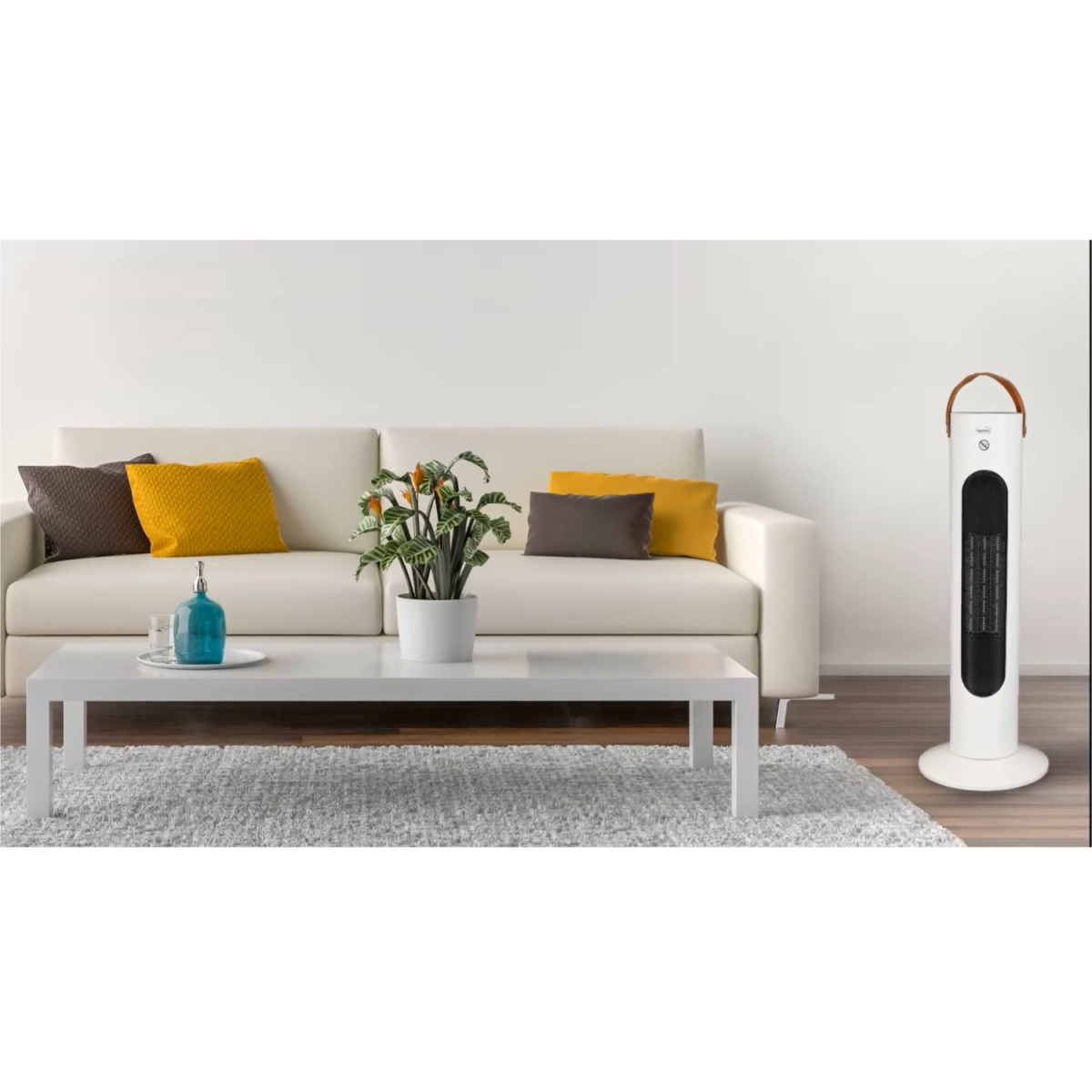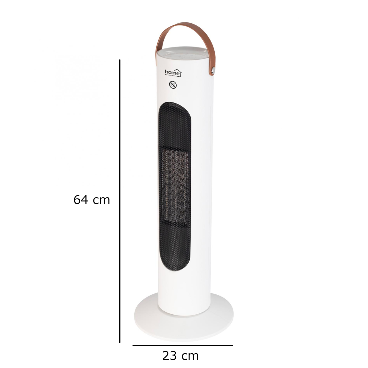 A Home beltéri álló kerámia fűtőtest tökéletes választás minden otthonba. 2 fűtési fokozata (1200 W, 2000 W), túlmelegedés elleni védelme garantálja a használat közbeni kényelmet és teljes biztonságot. A hőmérséklet 18, 21, 24 és 27 °C-ra állítható. Extra védelmi funkcióval is ellátott, ugyanis felborulás esetén a fűtőtest kikapcsol. Választható termosztát értékek. 15 órás kikapcsolás időzítője használatával este is használható. Kapcsolható oszcilláló és forgó funkcióval. A hozzá tartozó távirányítóval a fűtőtest minden funkciója egyszerűen állítható.