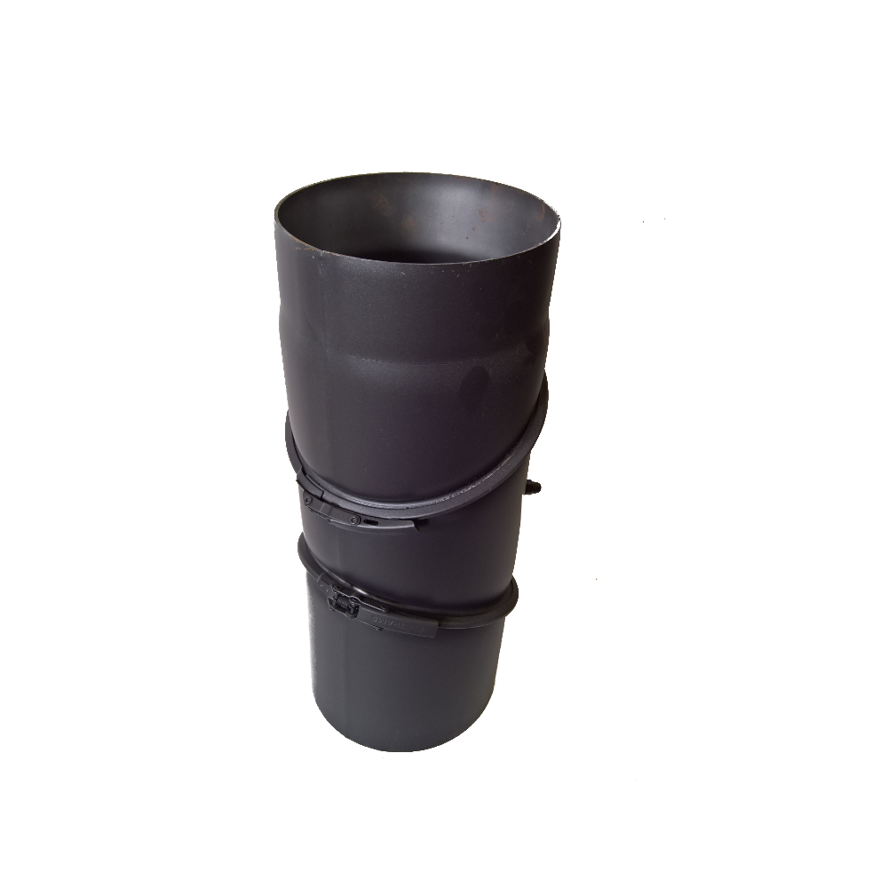 Fekete, 3 részes füstcső könyök, 160 mm átmérőjű, 2 mm-es falvastagsággal. Kazánokra, kandallókra, nagy teljesítményü kályhákhoz ajánlott. Állítható 45 és 90 fokban.