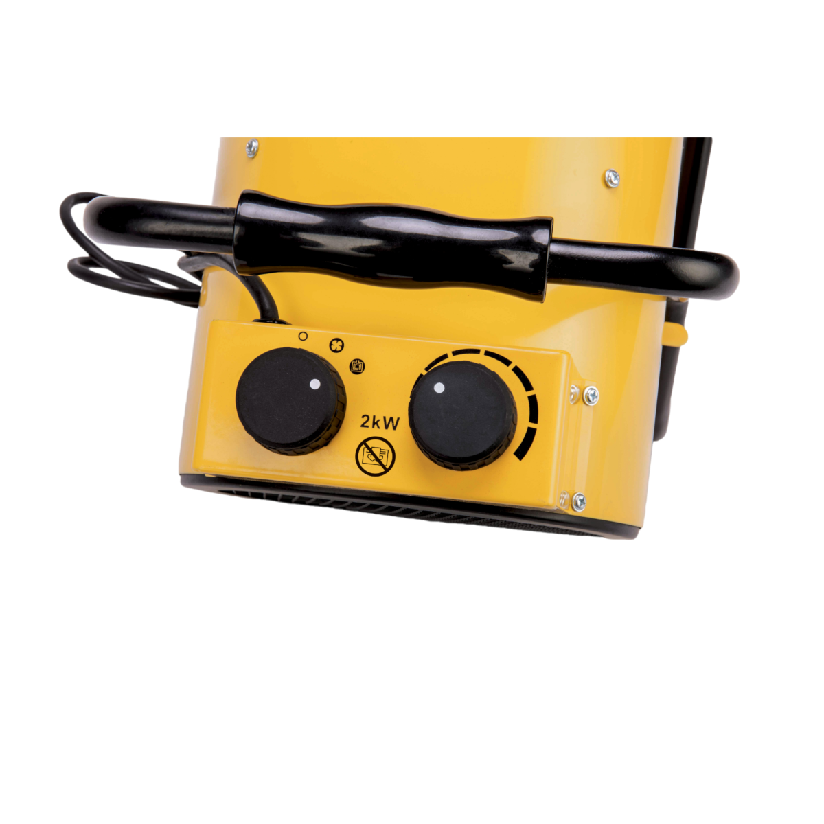 A két kapcsolható fűtési szint (25/2000 W) és az állítható termosztát lehetővé teszi a hőmérséklet finom beállítását. 230 V ~ 50 Hz. A rozsdamentes acél fűtőelem hosszú élettartamot biztosít, míg a túlmelegedés elleni védelem és az automatikus biztonsági kikapcsolás növeli a biztonságot. Az IP24 fröccsenésállósági besorolásnak köszönhetően nedvesebb helyiségekben is használható, a beépített hordozófogantyú pedig megkönnyíti a mozgatását. A 2 kW-os, ventilátoros ipari hősugárzó kiváló választás lehet műhelyek, garázsok és kerti fészerbe való fűtésre.