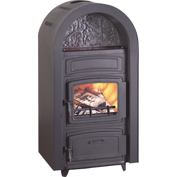 "Etna" íves, öntvény kandalló, duplafalú burkolattal, samott tűztérrel, felső/hátsó füstkivezetéssel. Mérete: 117,6x60x48,1 cm. Folyamatos üzemre alkalmas. Fűthető légtér: max 200 m3. Tömege: 160 kg. Füstcsőcsatlakozás átmérője: 150 mm. Tüzelőanyag: tűzifa, barnaszén. Hatásfok: 76%. Házhozszállítással történő rendelés esetén a kiszállítás kaputól kapuig történik.