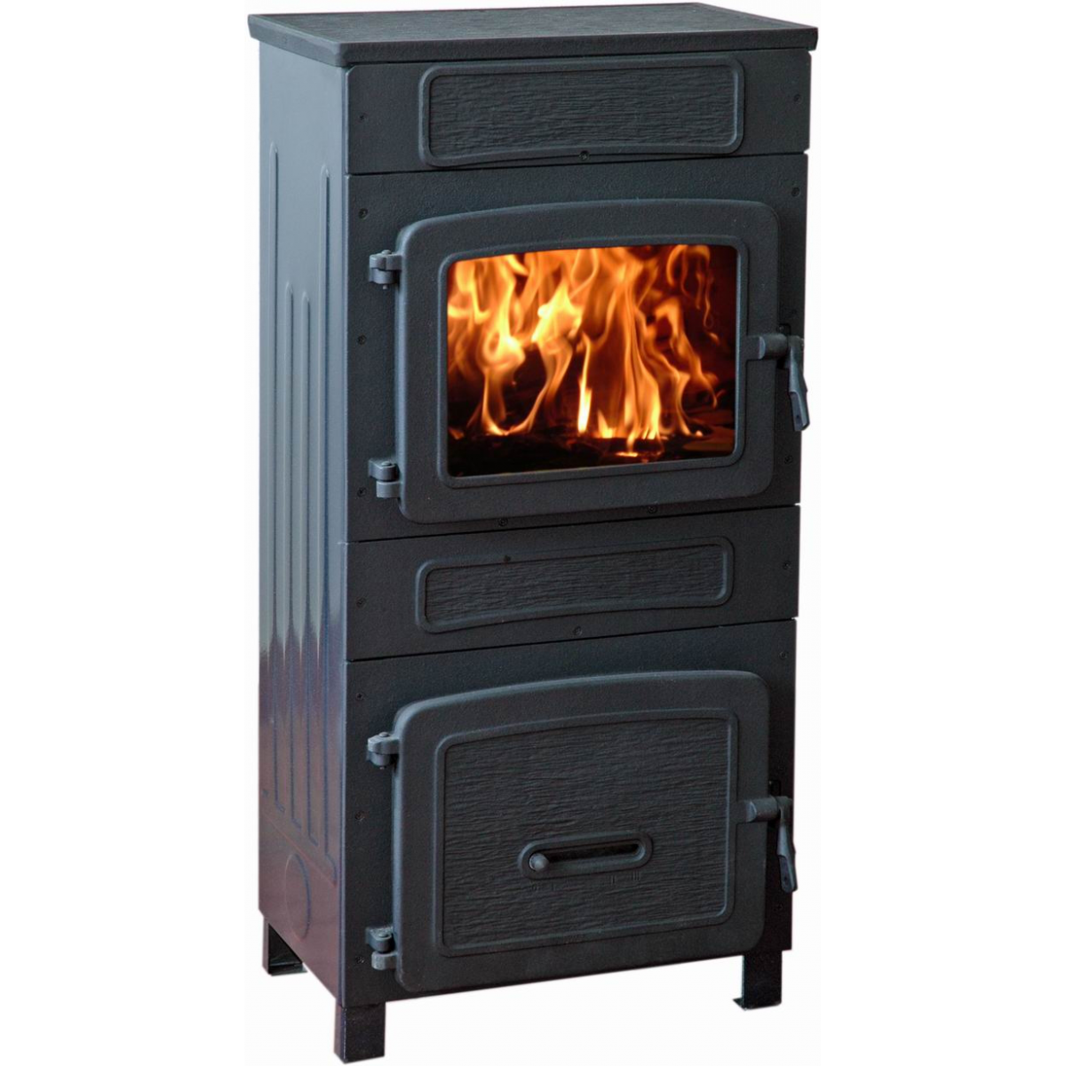 Szabadonálló, masszív felépítésű öntvény kandalló, széles üvegajtóval és nagyméretű tűztérrel. Mérete 91,9x44,4x36,7 cm, az ablak 26,5x19,5 cm-es. Teljesítménye maximum 8 kW.