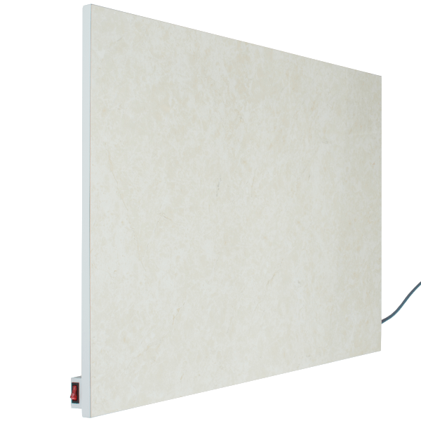 Infrapanel, 600W, márvány mintás, 90x60x1,6 cm méretben. Fűthető légtér: 29 m3. Max. 12 m2 helységhez ajánlott.