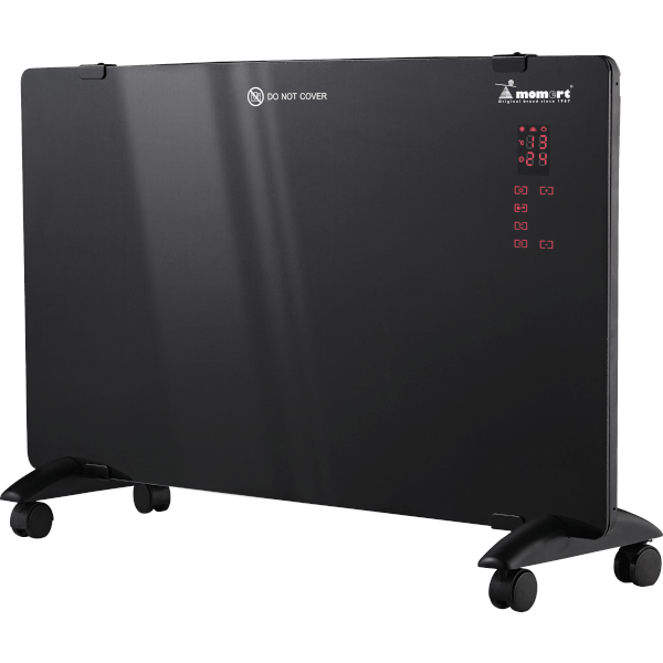 Elektromos fűtőtest - 1500 W - üveglapos - 2 fűtési fokozat - 24 órás időzítő - szobahőmérséklet kijelzés - túlmelegedés elleni védelem