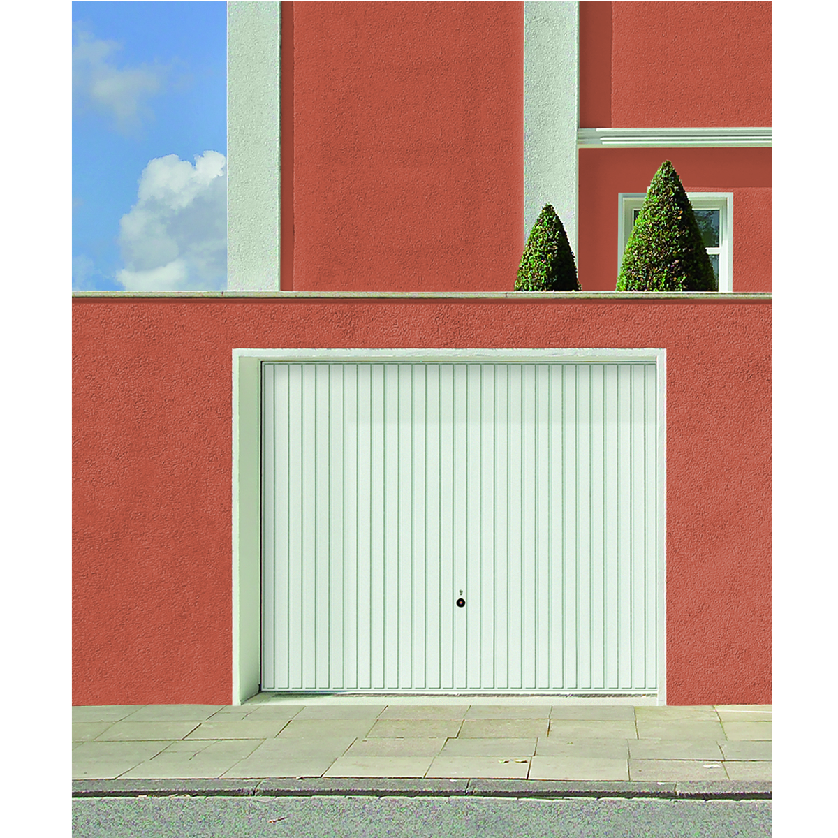 Billenő garázskapu "PEARL", fehér, bordázott. Nyílás mögé és nyílásba is beépíthető.