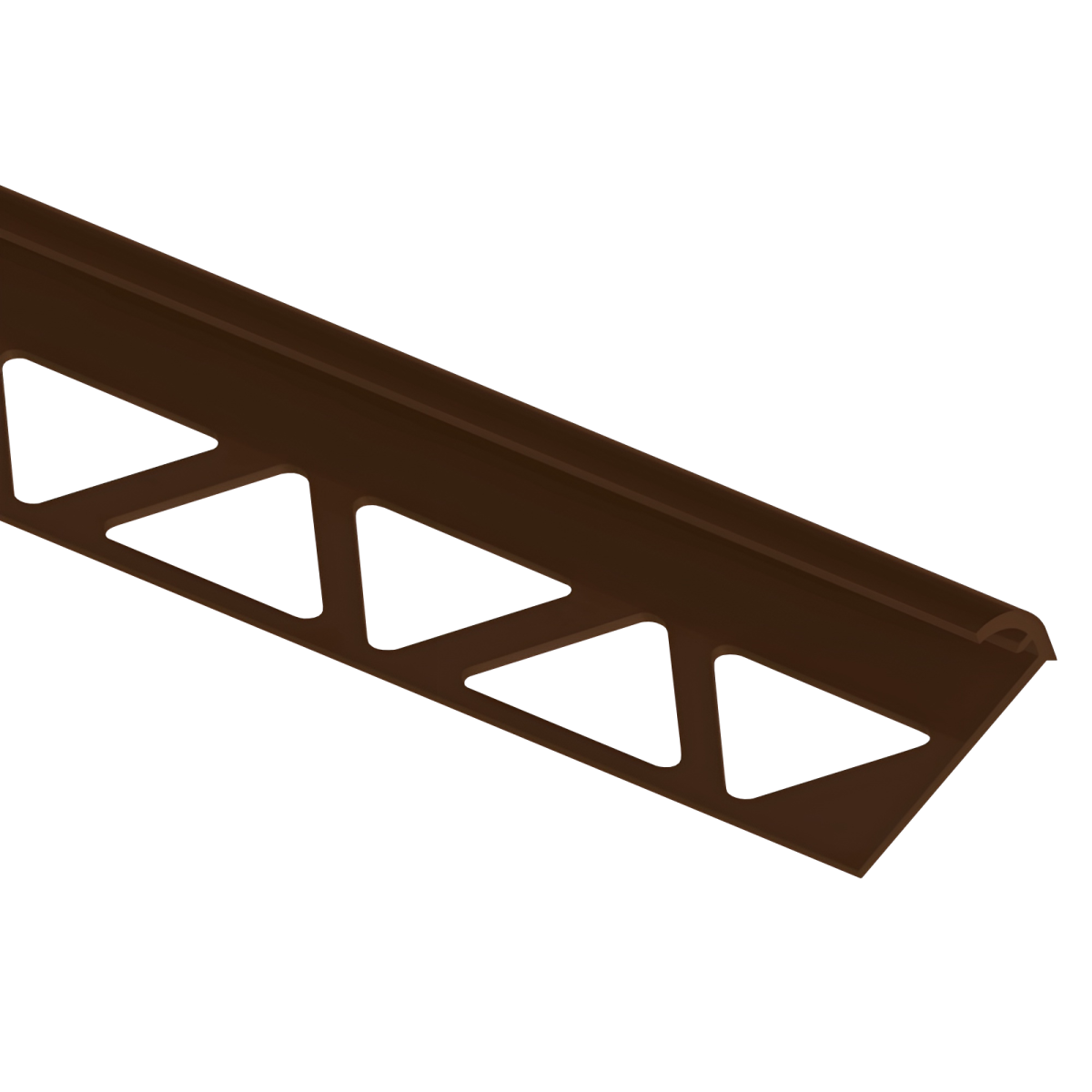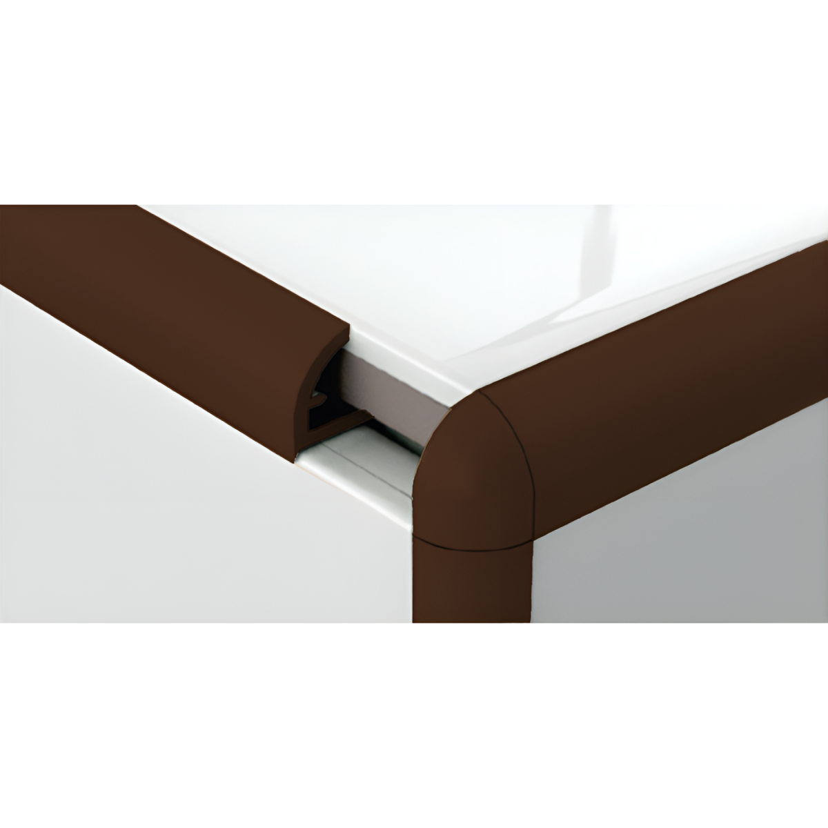 Ez a barna színű, íves kialakítású PVC csempeélvédő letisztult megoldást kínál a csempével burkolt felületek éleinek lezárására.