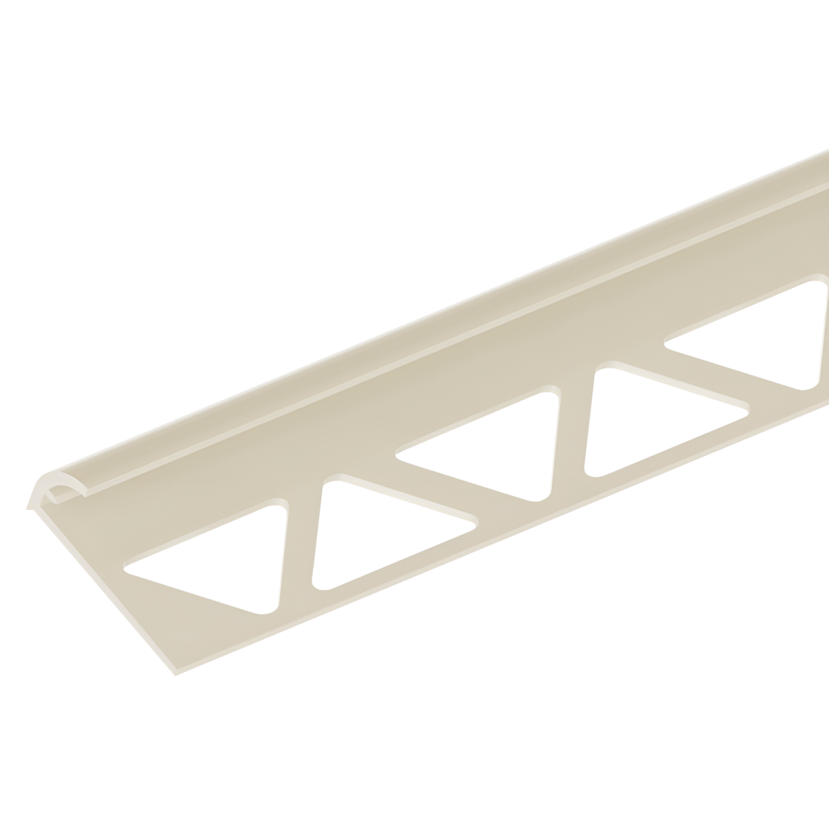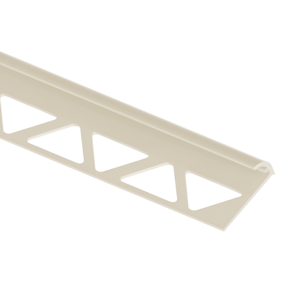 Ez a törtfehér színű, íves kialakítású PVC csempeélvédő letisztult megoldást kínál a csempével burkolt felületek éleinek lezárására.
