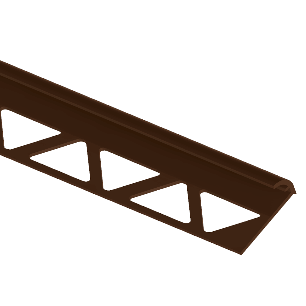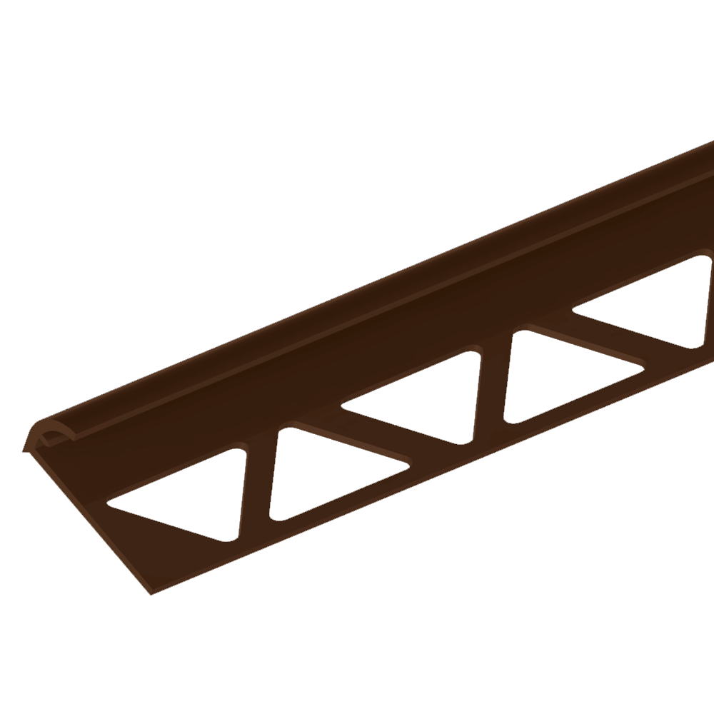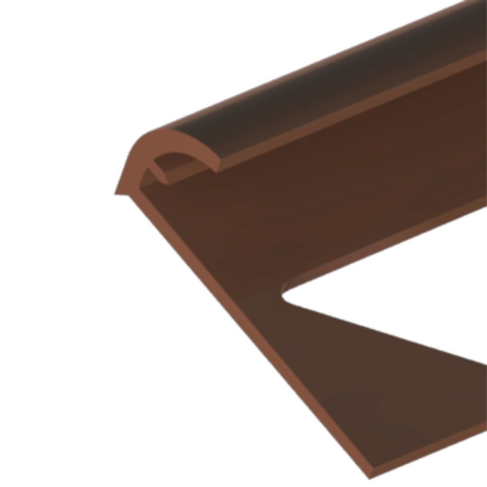 Ez a barna színű, íves kialakítású PVC csempeélvédő letisztult megoldást kínál a csempével burkolt felületek éleinek lezárására.
