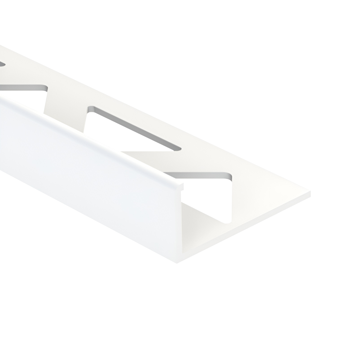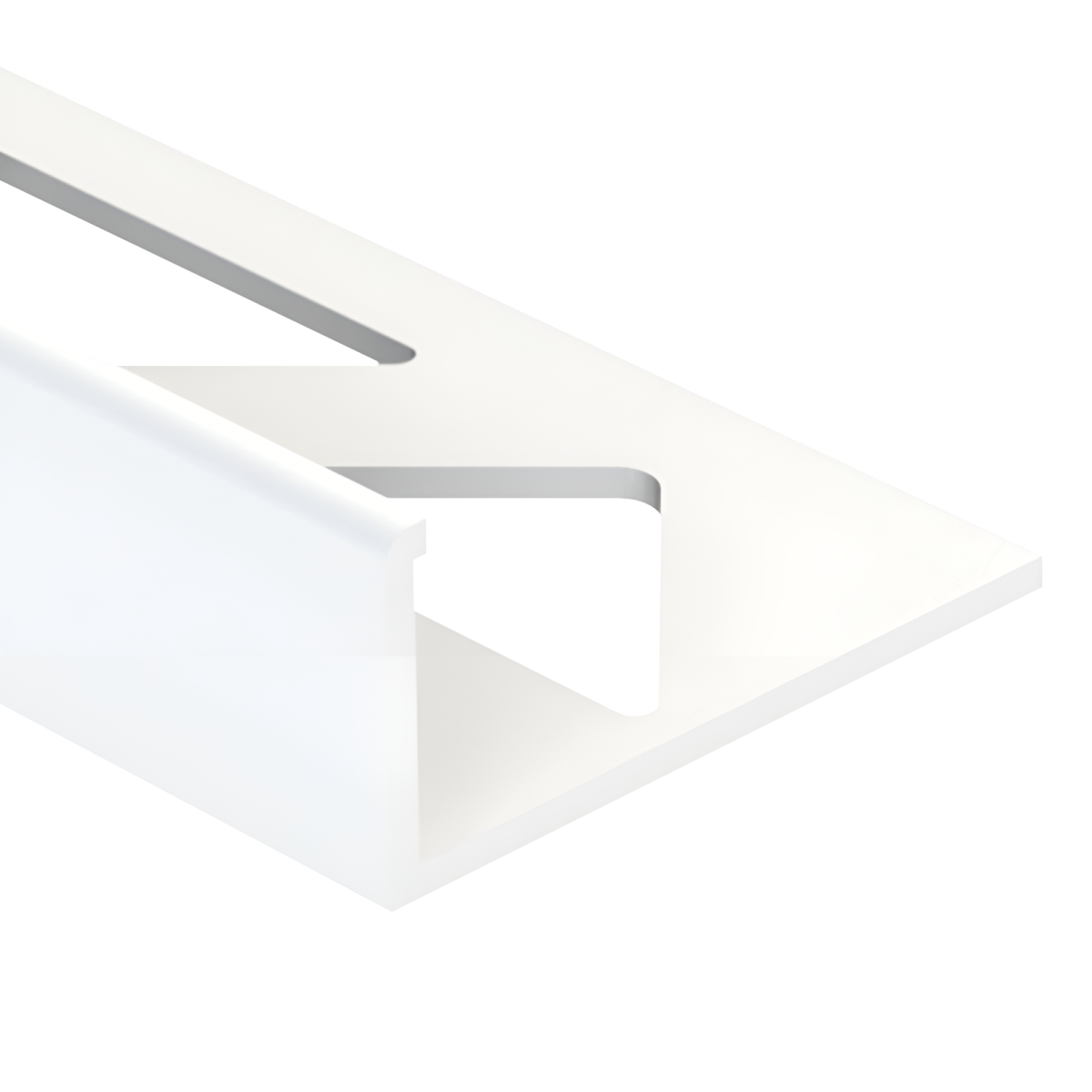 Ez a fehér színű, szögletes kialakítású PVC csempeélvédő letisztult megoldást kínál a csempével burkolt felületek éleinek lezárására.
