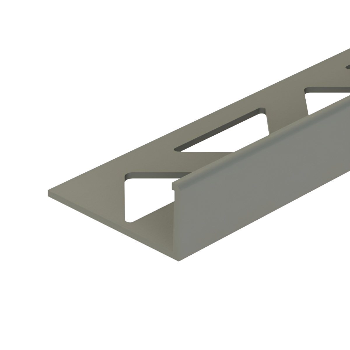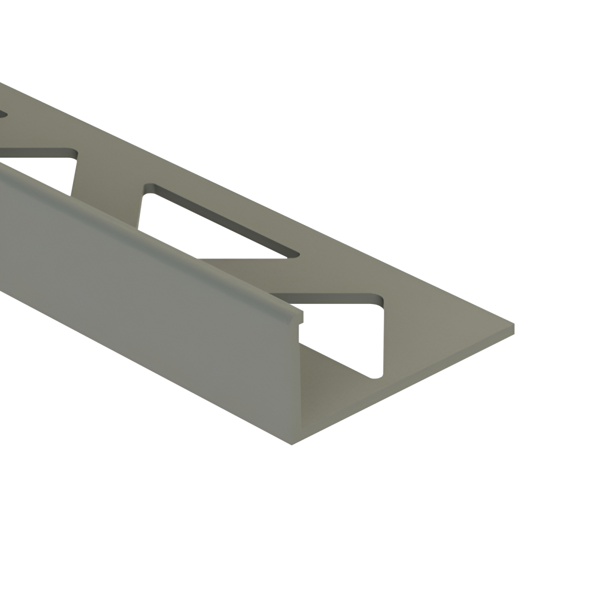 Ez a középszürke színű, szögletes kialakítású PVC csempeélvédő letisztult megoldást kínál a csempével burkolt felületek éleinek lezárására.