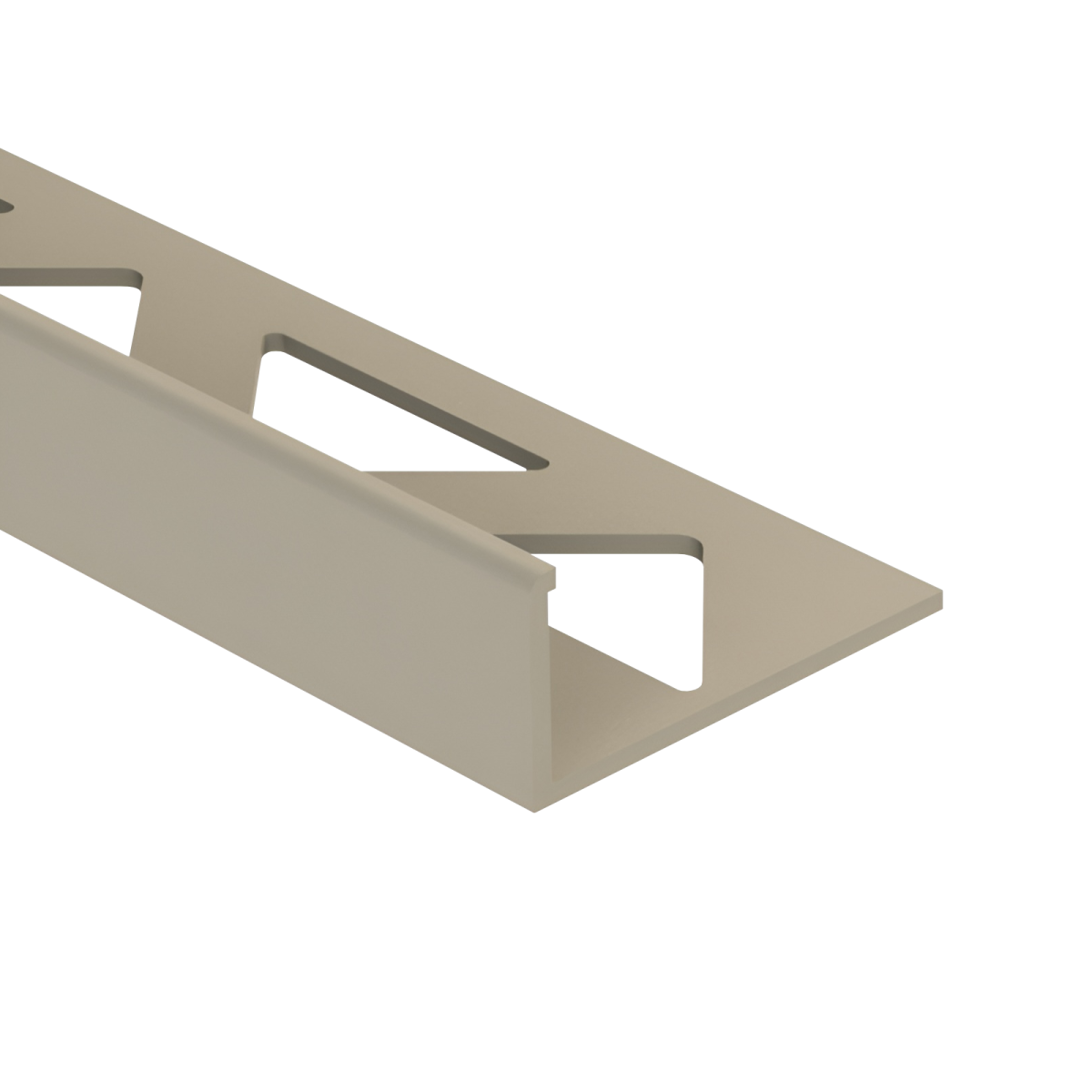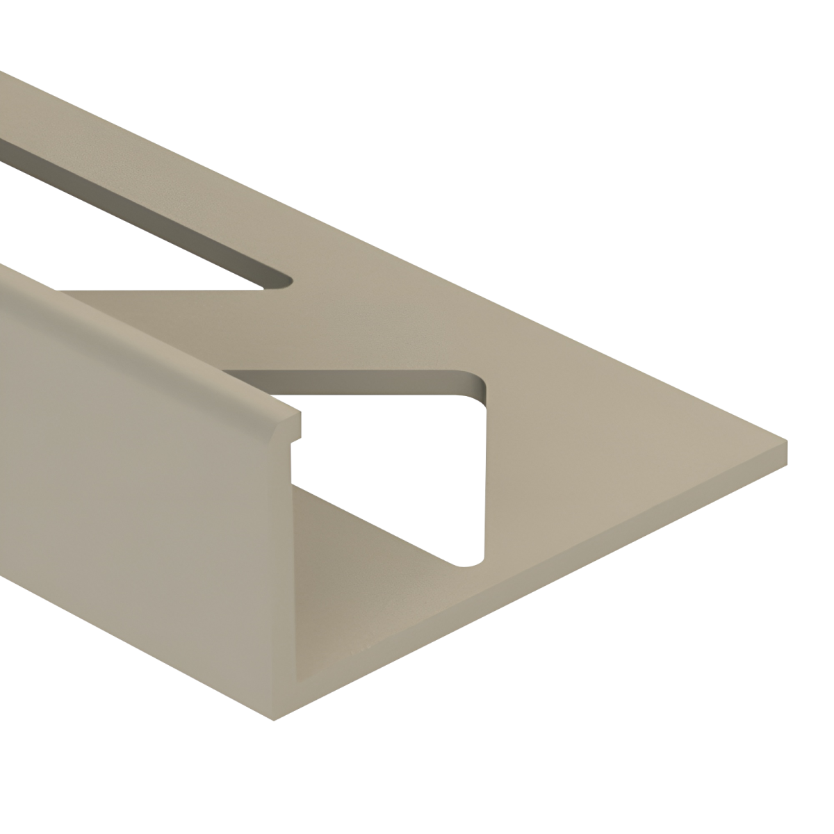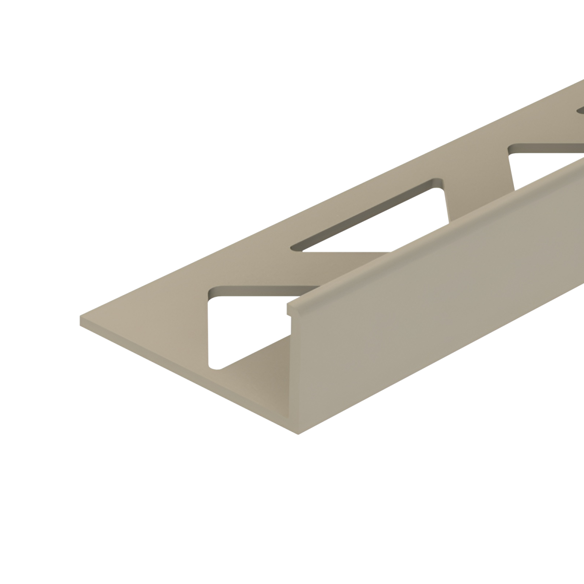 Ez a bézs színű, szögletes kialakítású PVC csempeélvédő letisztult megoldást kínál a csempével burkolt felületek éleinek lezárására.